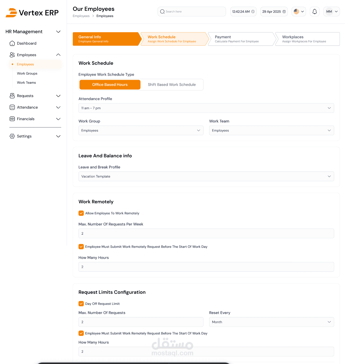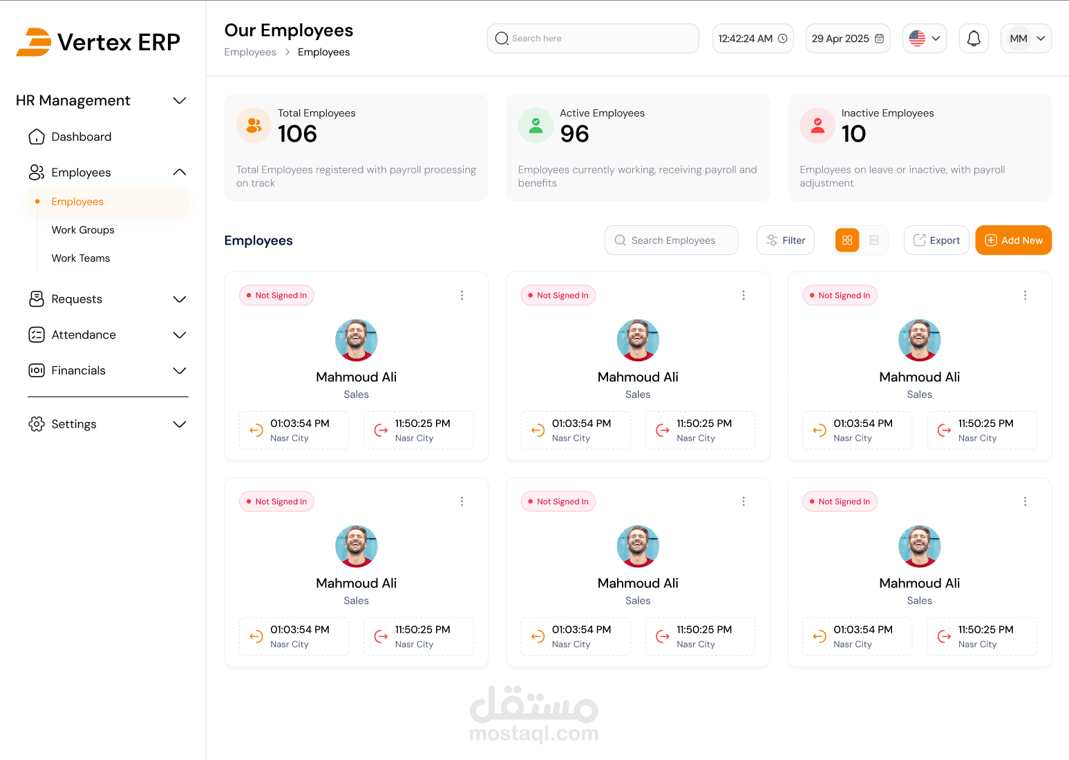 نظام حضور وانصراف متكامل مع إمكانية الربط بأجهزة البصمة.