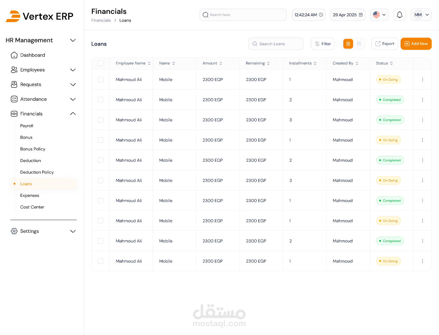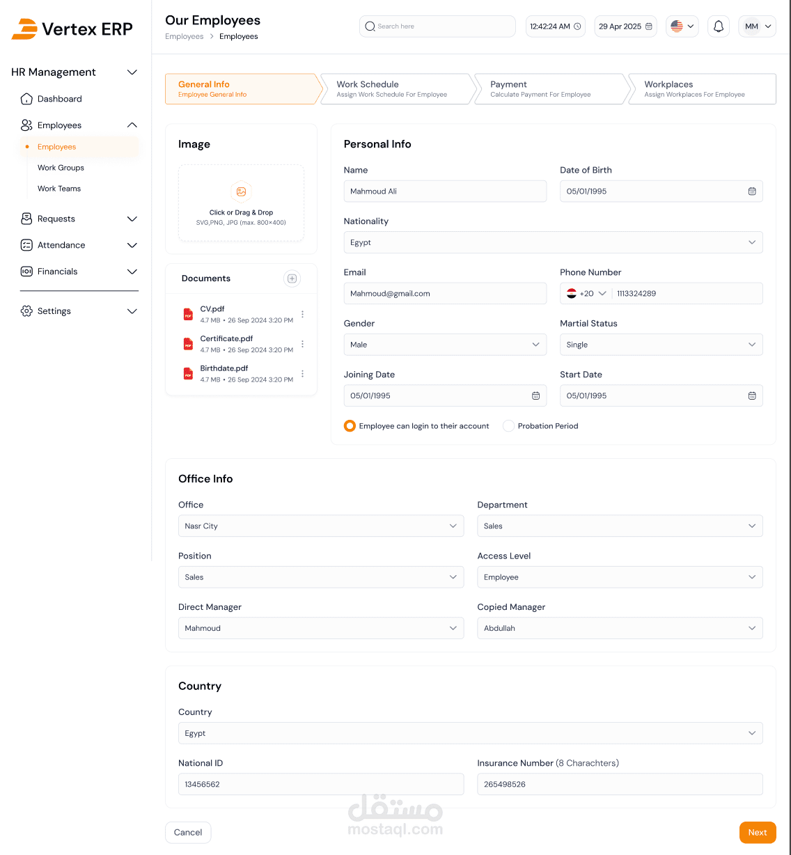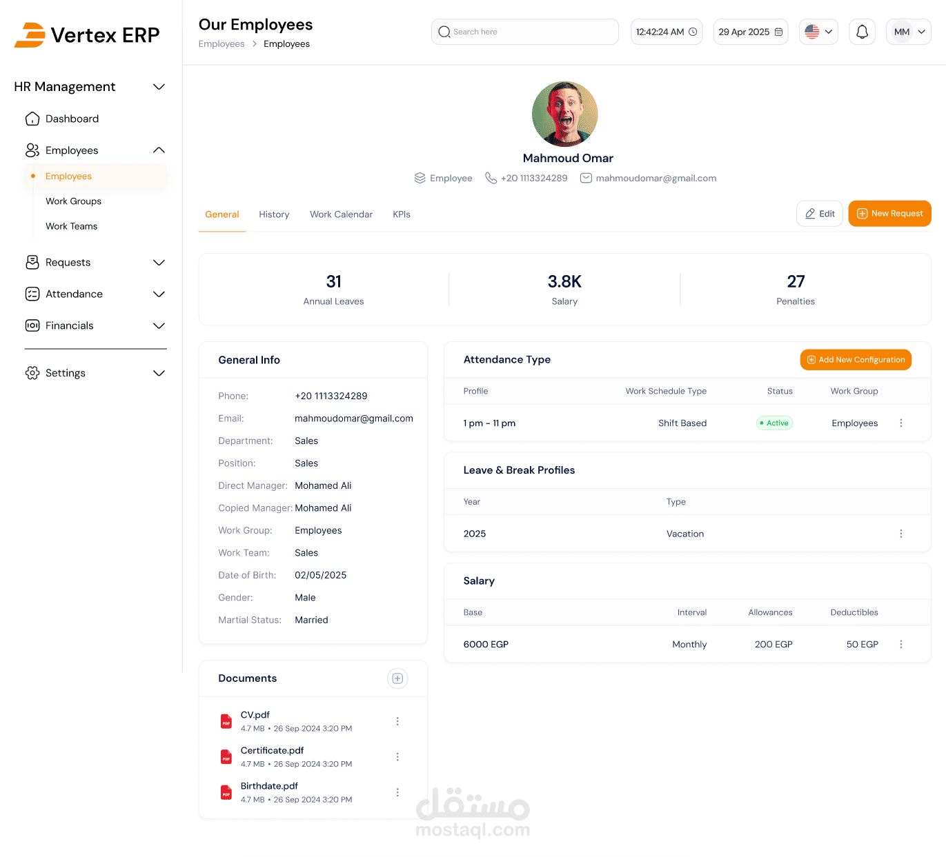 إدارة كاملة للموظفين: بياناتهم، عقودهم، وإجازاتهم.