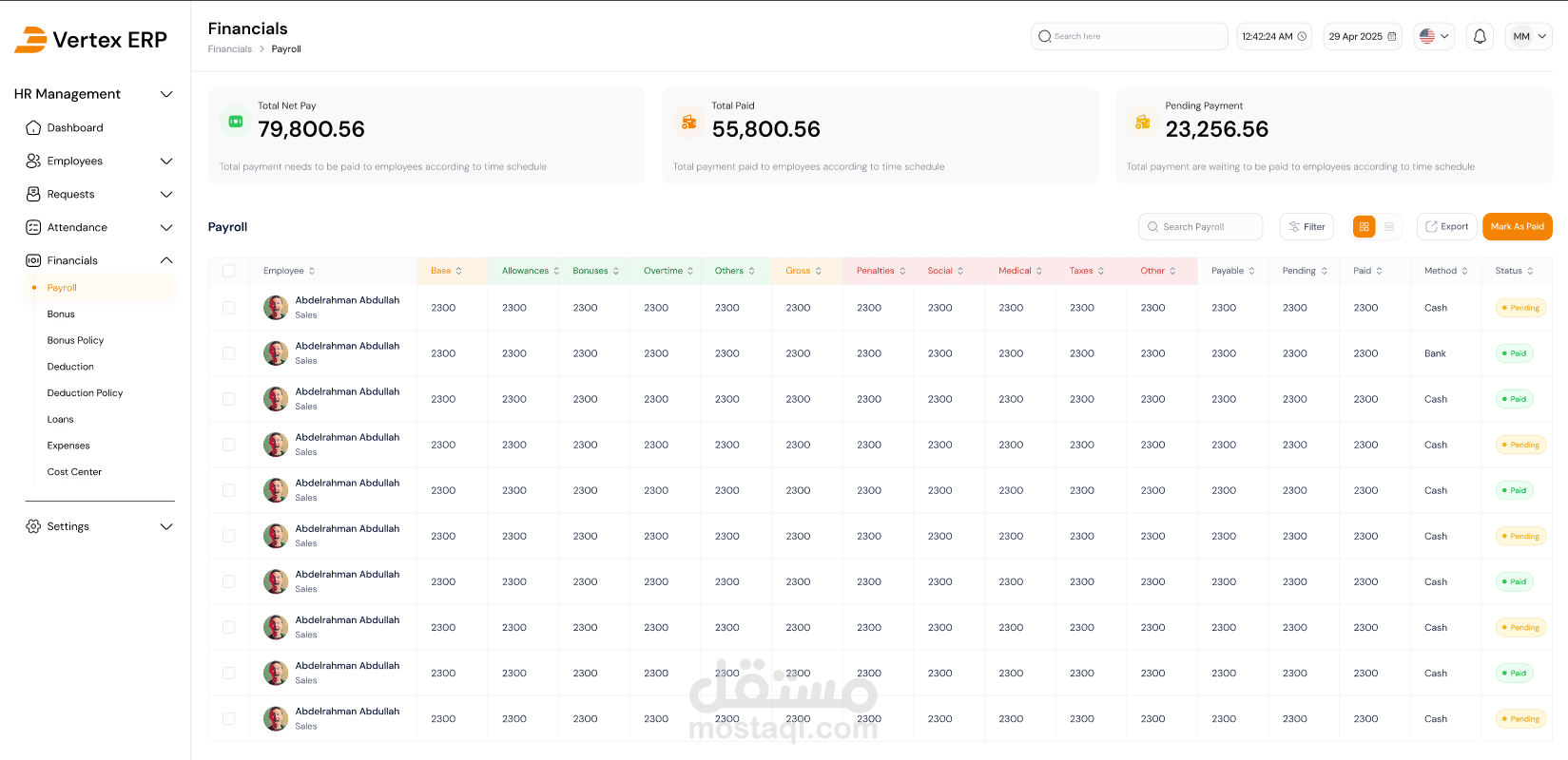 إدارة المرتبات والمكافآت والاستقطاعات بشكل آلي.