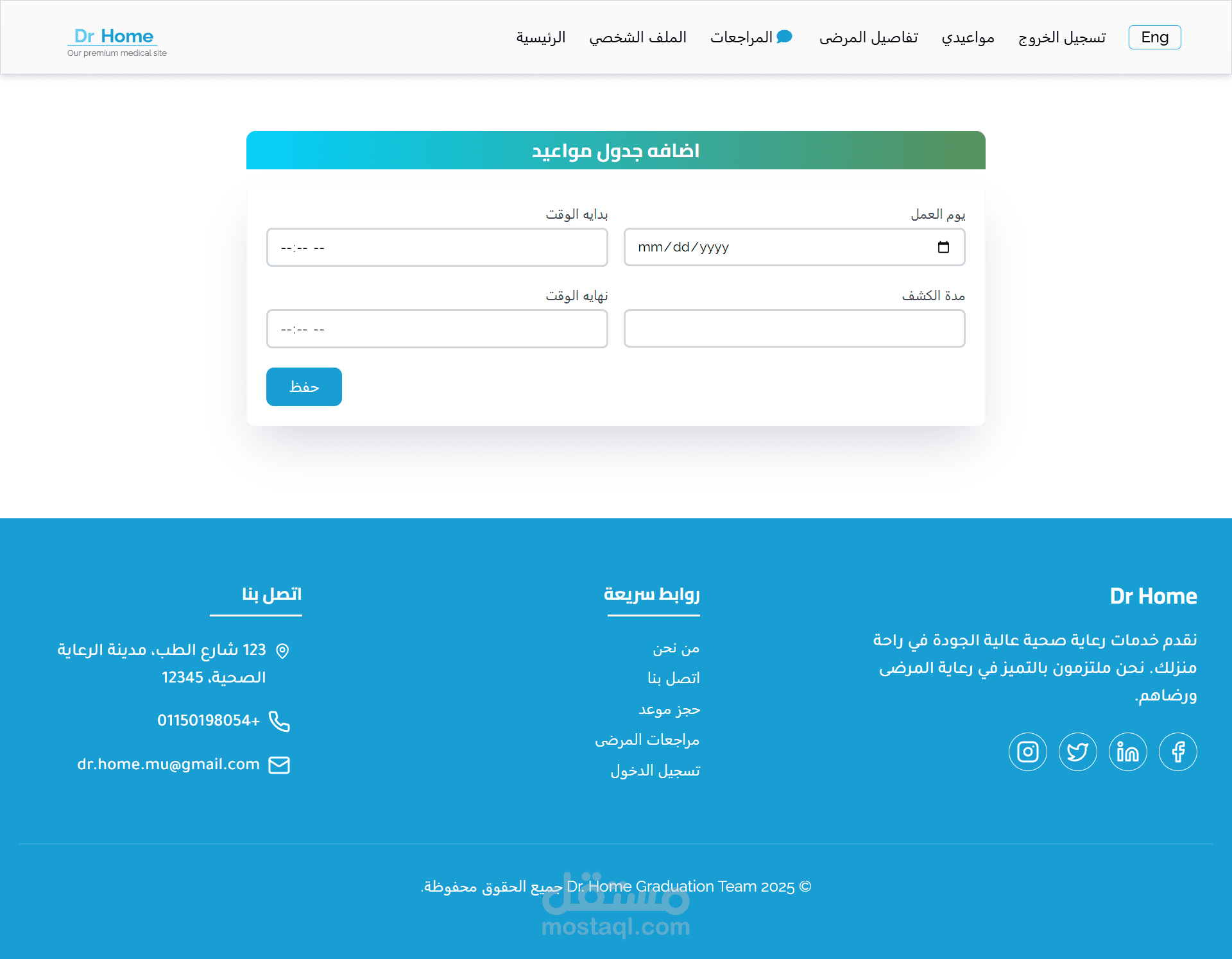 قمت بتصميم وتطوير واجهة موقع طبي متكامل باستخدام React.js و Tailwind CSS ، يهدف إلى تسهيل تجربة المستخدم في حجز المواعيد، واستعراض الأطباء والعيادات، وتنفيذ استشارات طبية عبر الإنترنت.