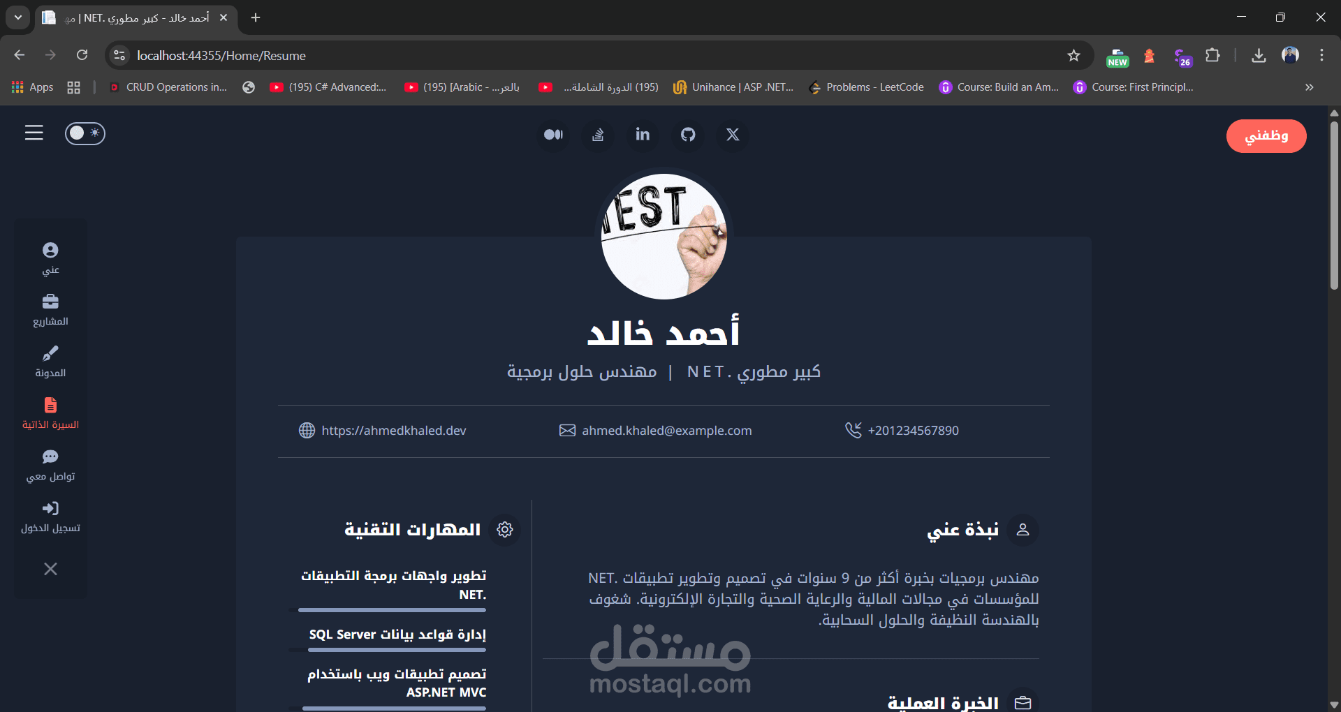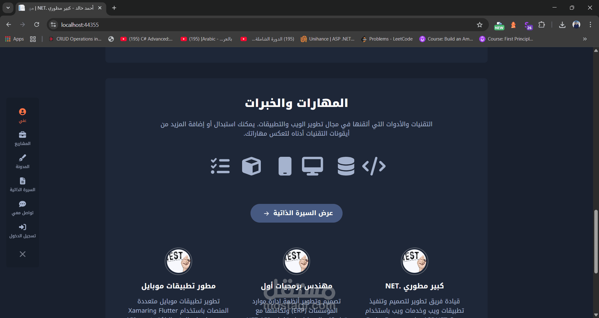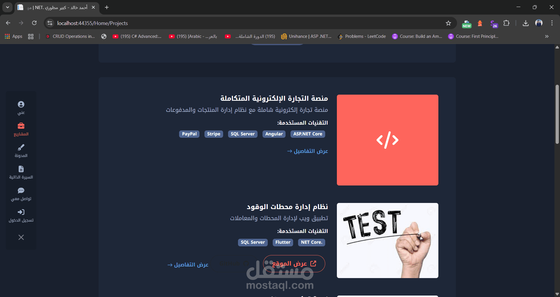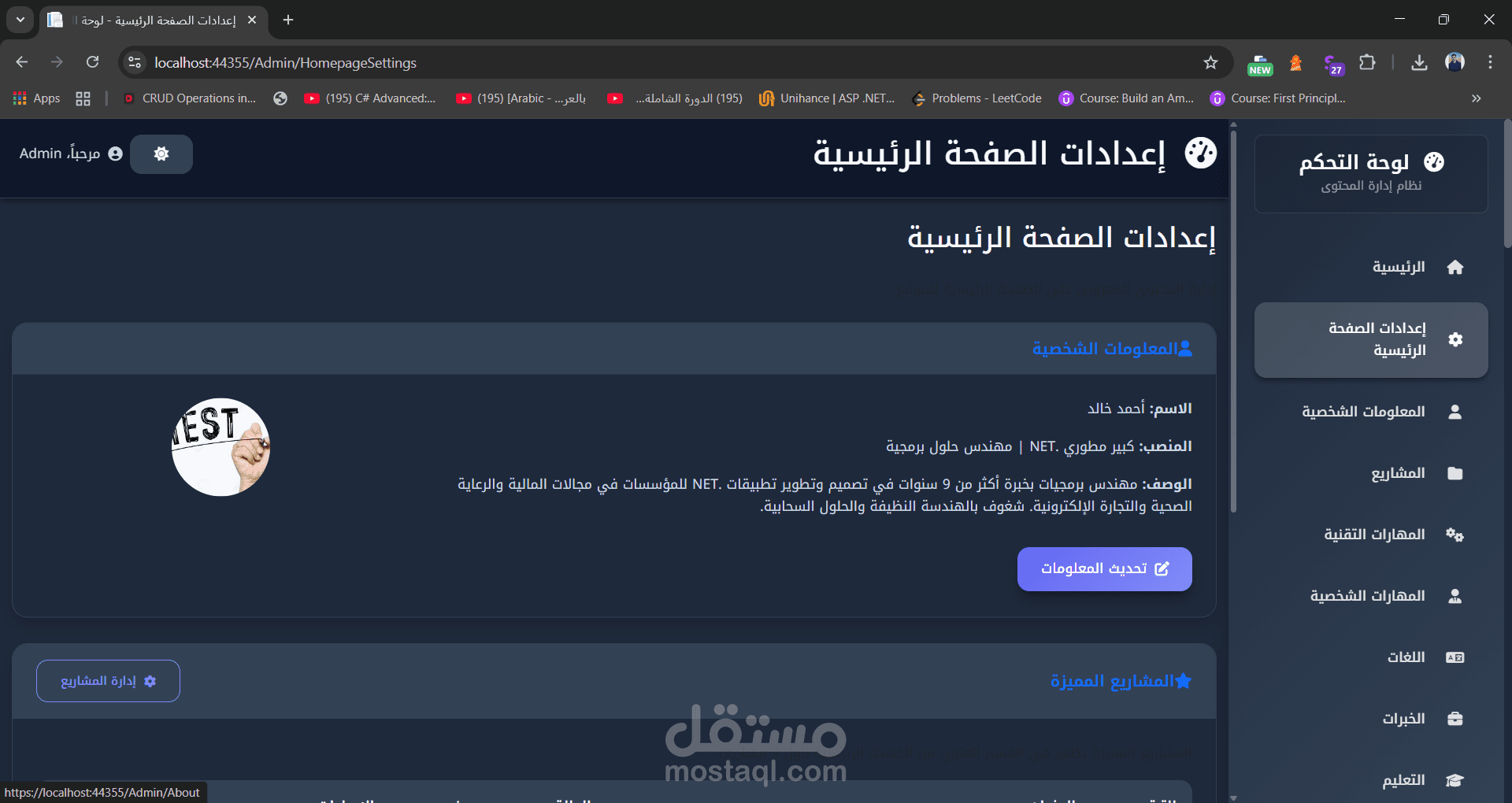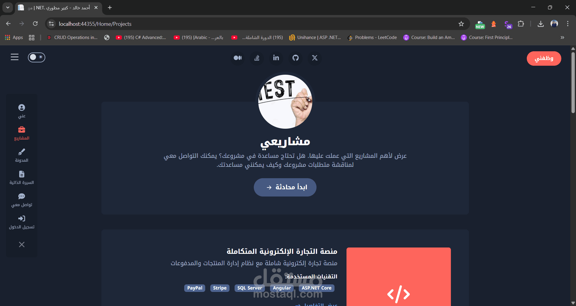 الصفحة الرئيسية: عرض الملف الشخصي والمشاريع المميزة