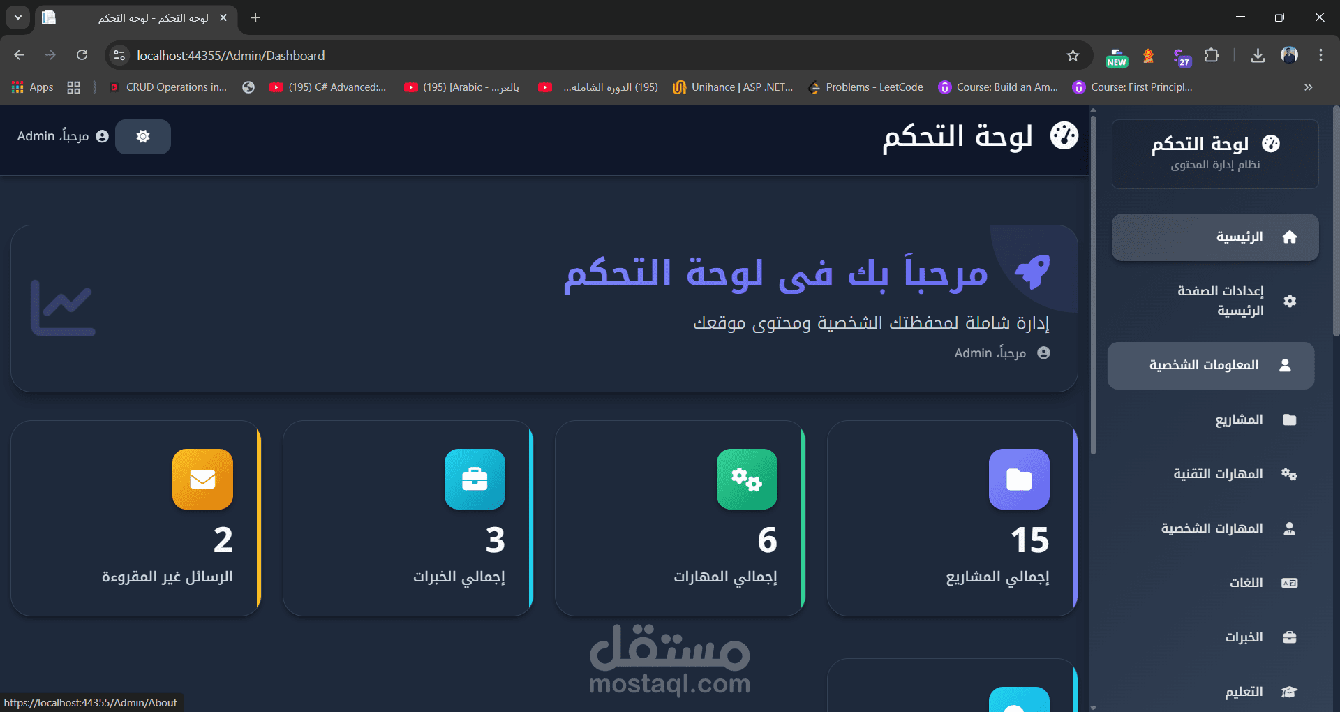 هذا مشروع محفظة شخصية إلكترونية متكاملة (Personal Portfolio System) مصمم للمطورين والمصممين والمهنيين لعرض أعمالهم ومهاراتهم بطريقة احترافية.