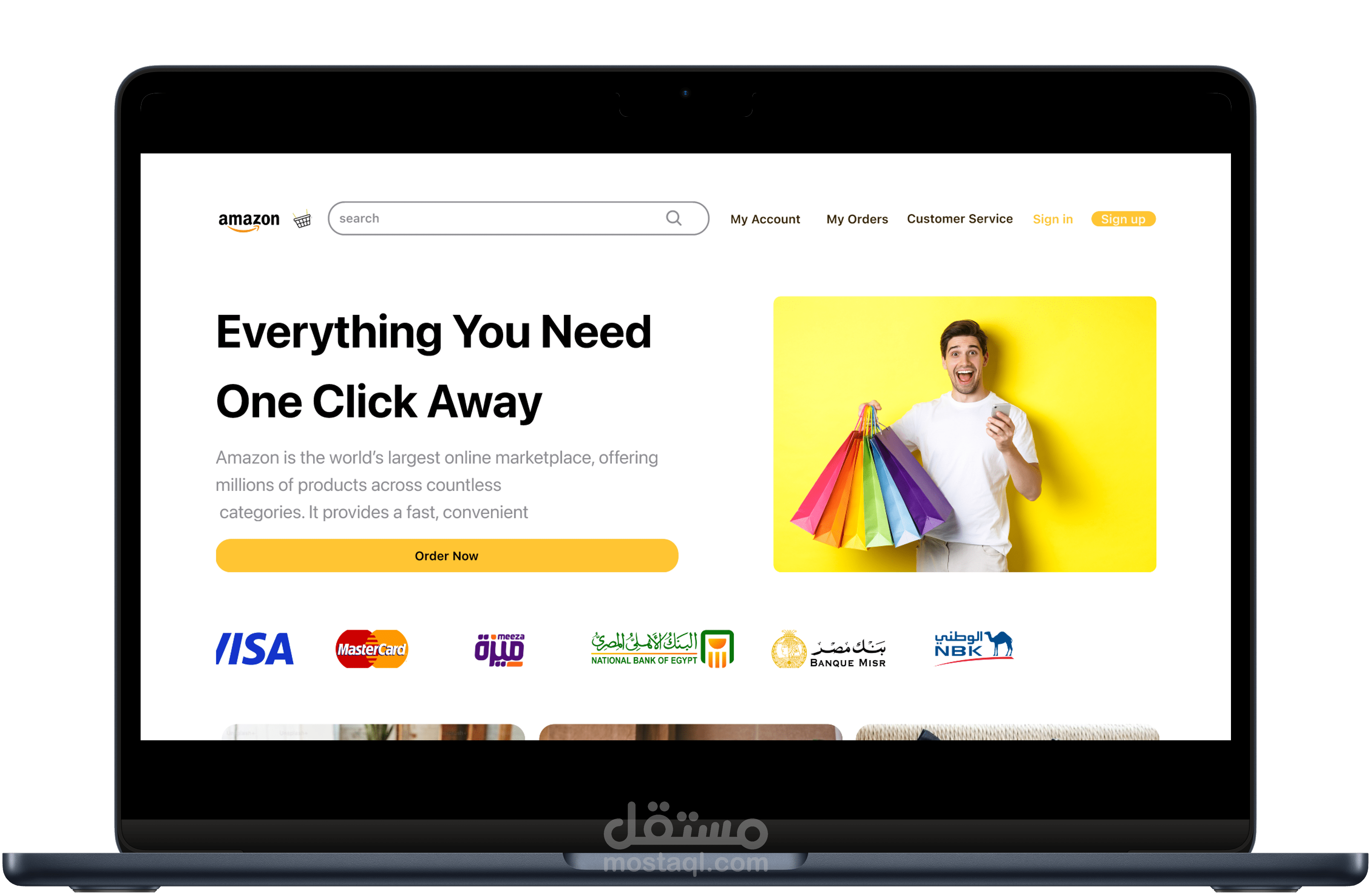مشروع تصميم تجربة مستخدم (UI/UX) لمفهوم موقع تسوّق إلكتروني مستوحى من منصة Amazon، يهدف إلى إعادة تصور تجربة الشراء عبر الإنترنت بطريقة أبسط وأكثر سلاسة.