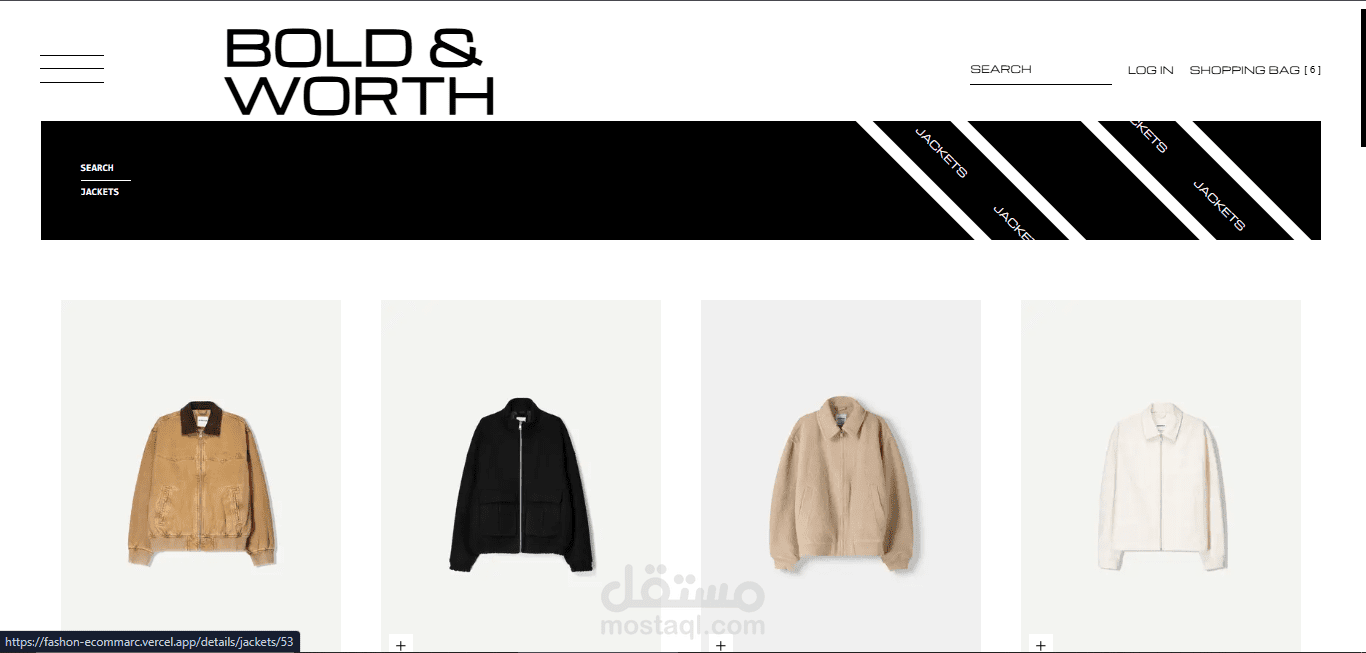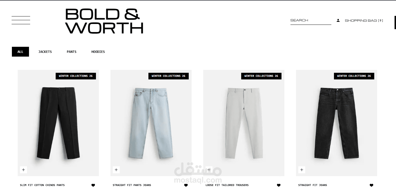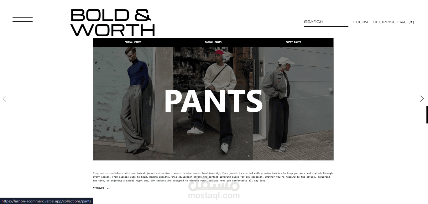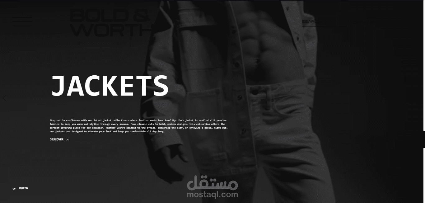 تم تطوير متجر إلكتروني متكامل للأزياء الرجالية يتميز بالسرعة العالية والتجاوب الكامل، مع بنية نظيفة تعتمد على مكونات قابلة لإعادة الاستخدام لتحقيق المرونة وسهولة التطوير مستقبلاً.