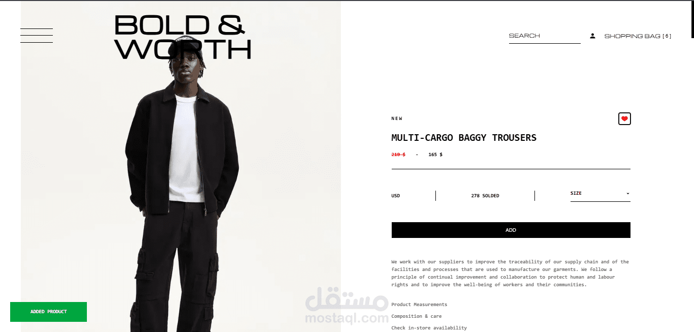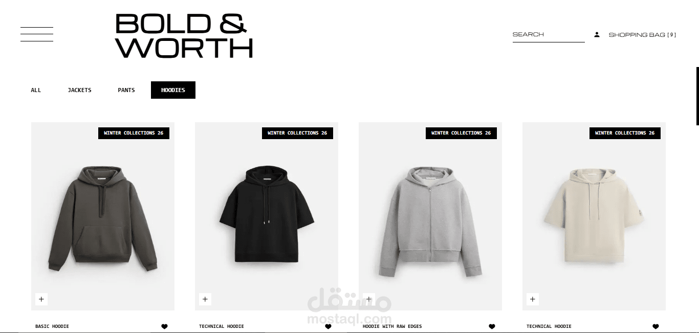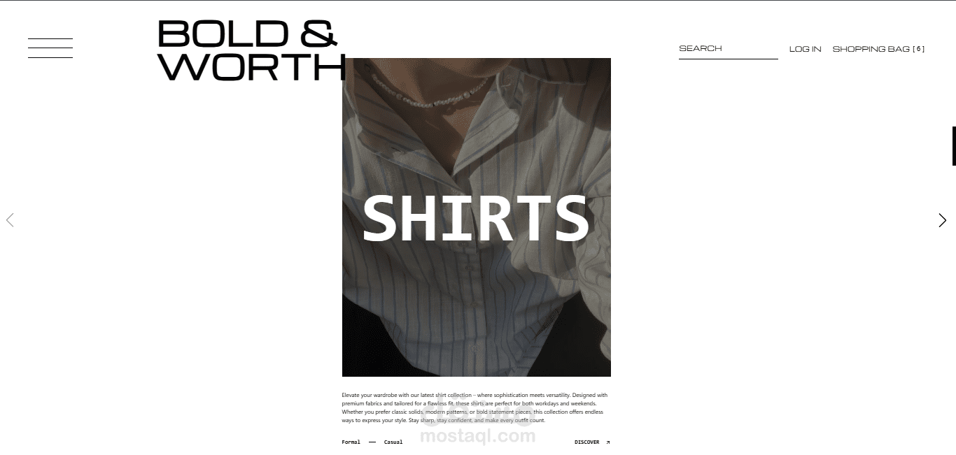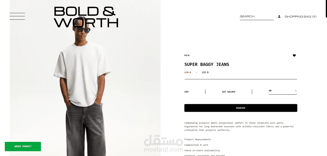 تم تطوير متجر إلكتروني متكامل للأزياء الرجالية يتميز بالسرعة العالية والتجاوب الكامل، مع بنية نظيفة تعتمد على مكونات قابلة لإعادة الاستخدام لتحقيق المرونة وسهولة التطوير مستقبلاً.