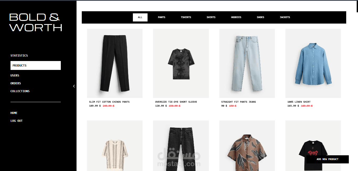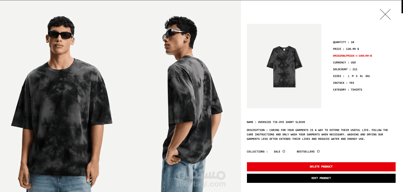 • إدارة المنتجات (إضافة، تعديل، حذف، تحديد كمنتج مميز أو ضمن التخفيضات).
