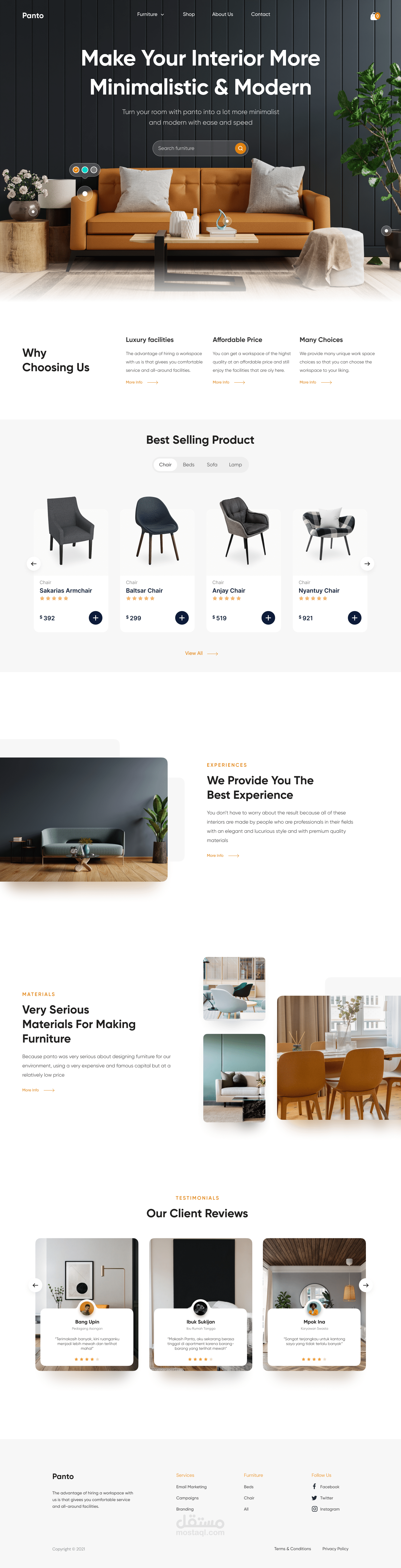 مشروع جديد أنجزته لتصميم صفحة هبوط خاصة ببراند أثاث عصري.