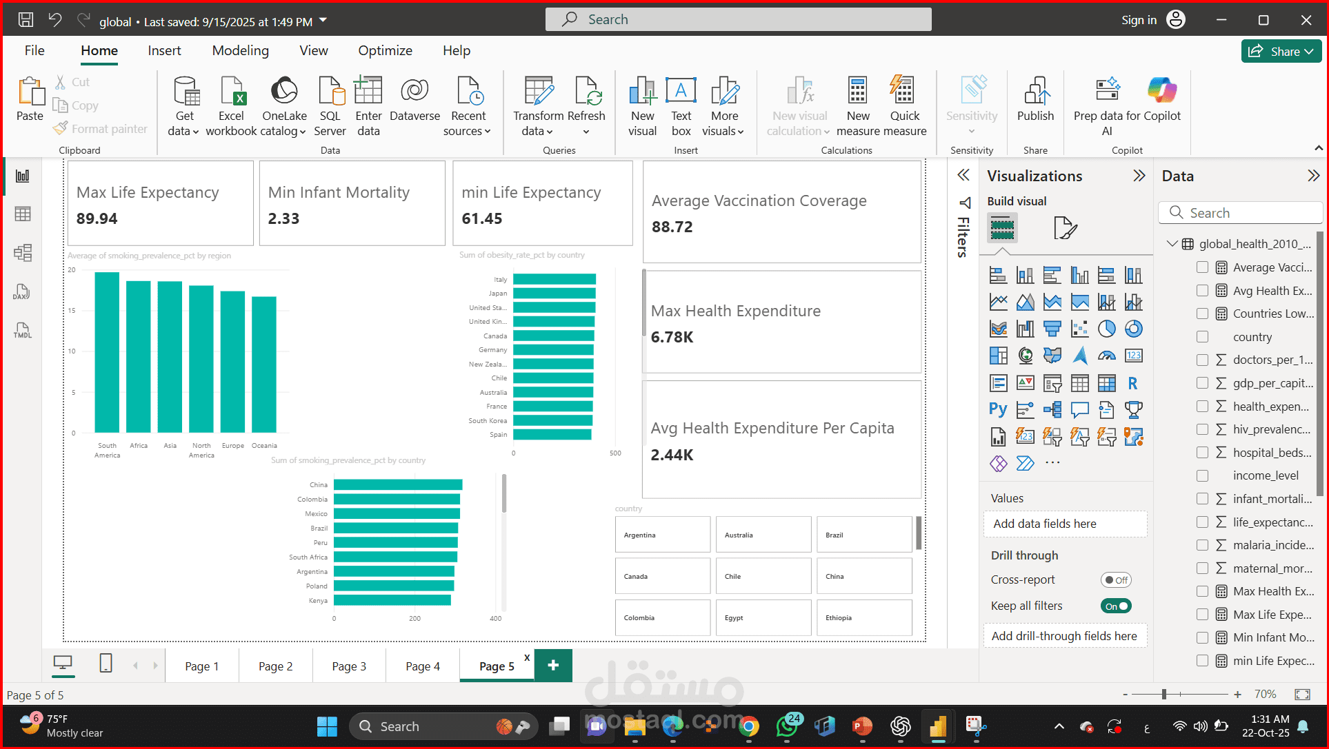 من خلال مقارنة الإنفاق الصحي بمعدلات الوفيات، بتساعد الداشبورد في تقييم كفاءة الاستثمارات ووضع استراتيجيات صحية أكثر فاعلية.