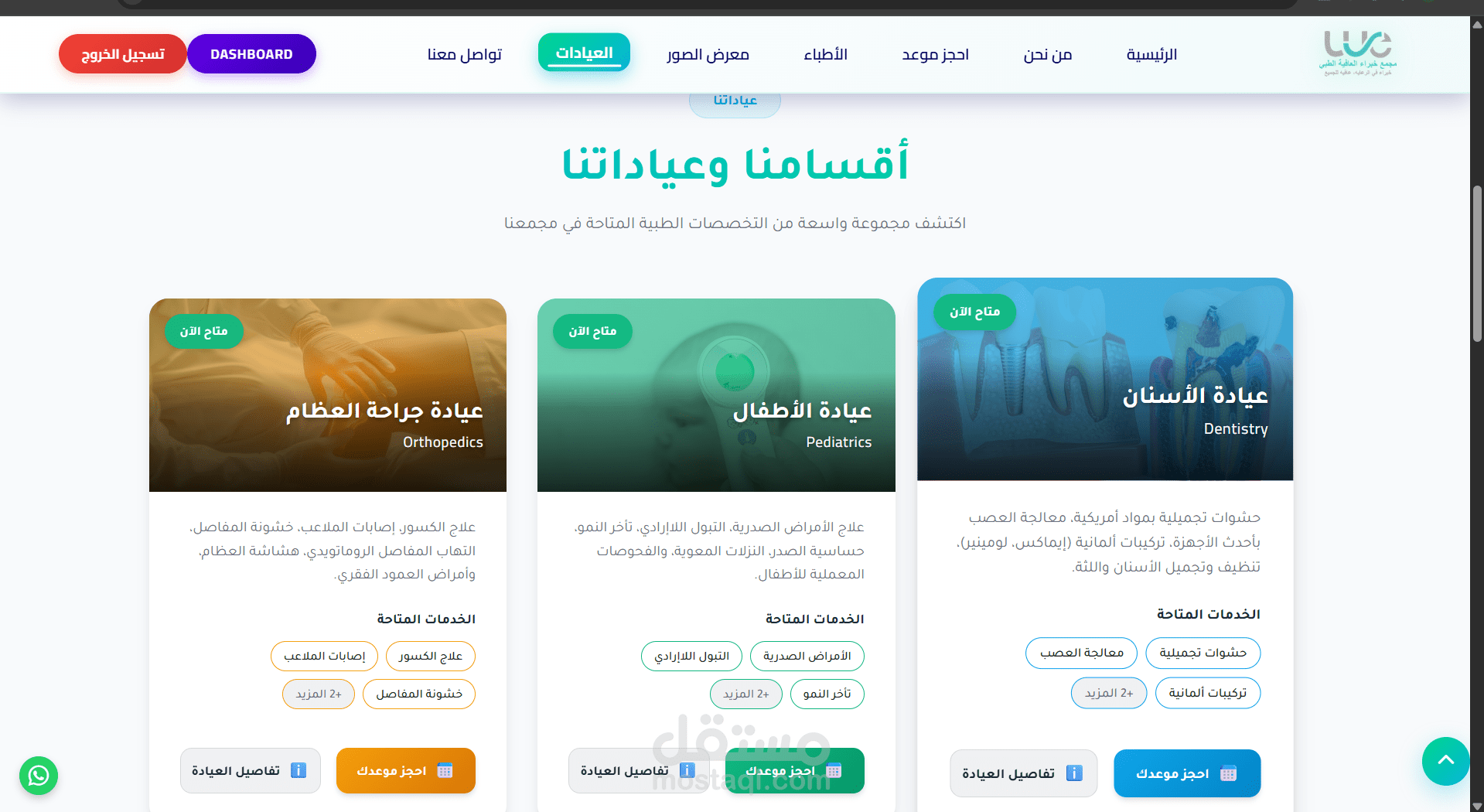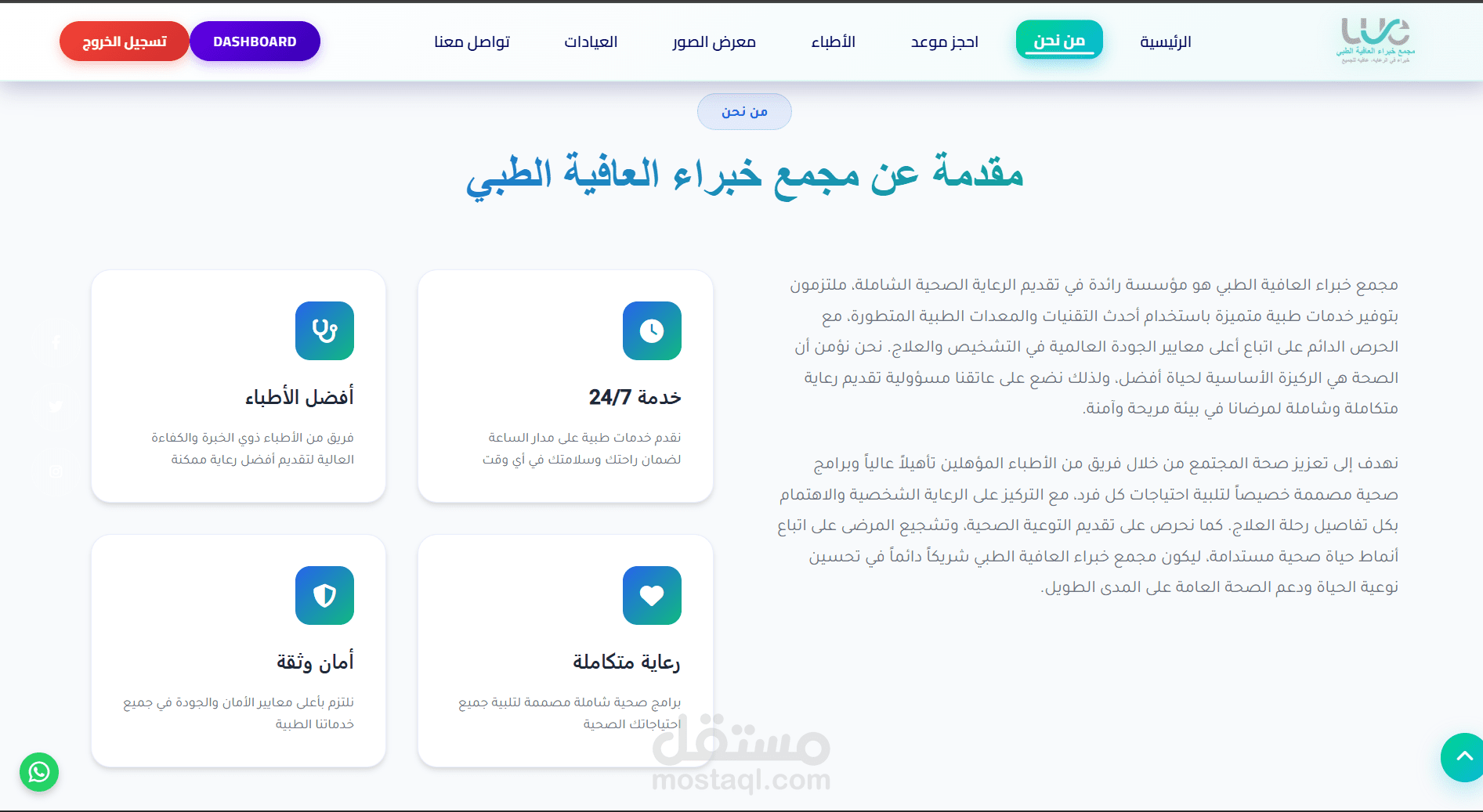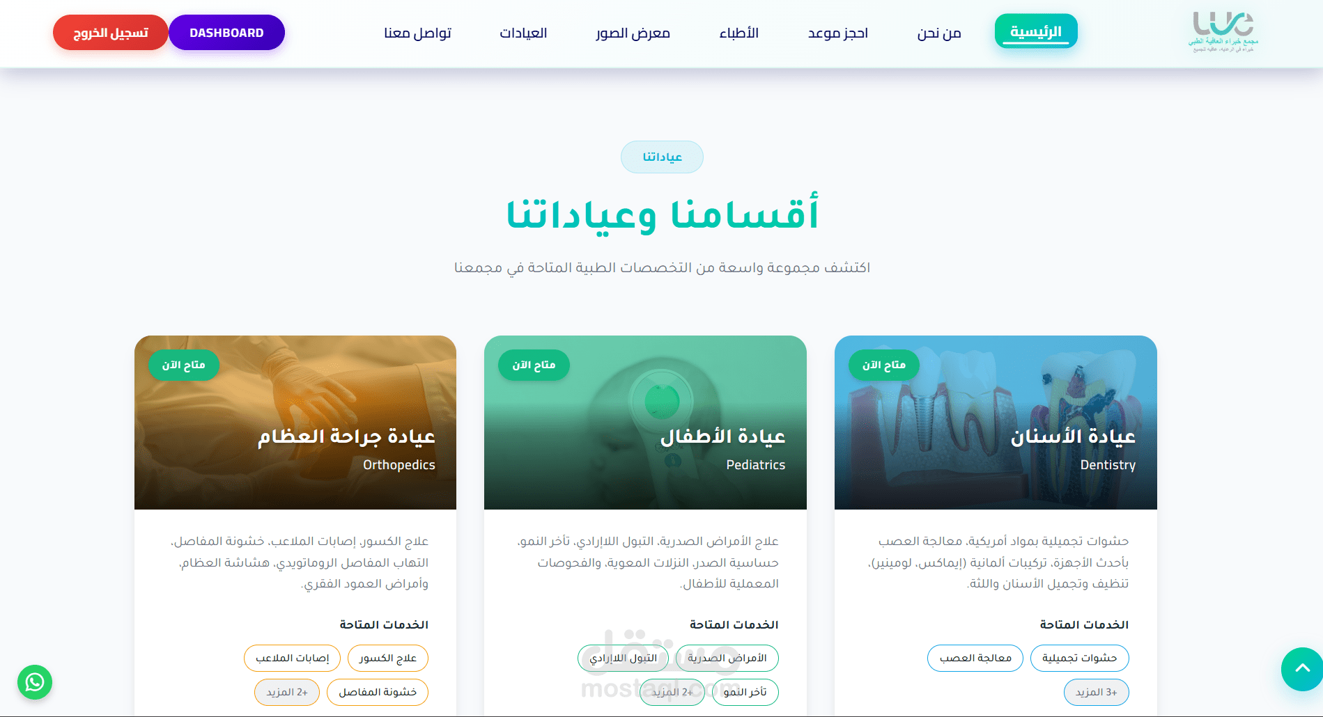 يهدف الموقع إلى إبراز هوية المجمع الطبي بشكل احترافي، وتمكين الزوار من استعراض الأطباء والعيادات المتخصصة والحجز مباشرة عبر الإنترنت، مع إمكانية اختيار الطبيب والموعد المناسب بكل سهولة.