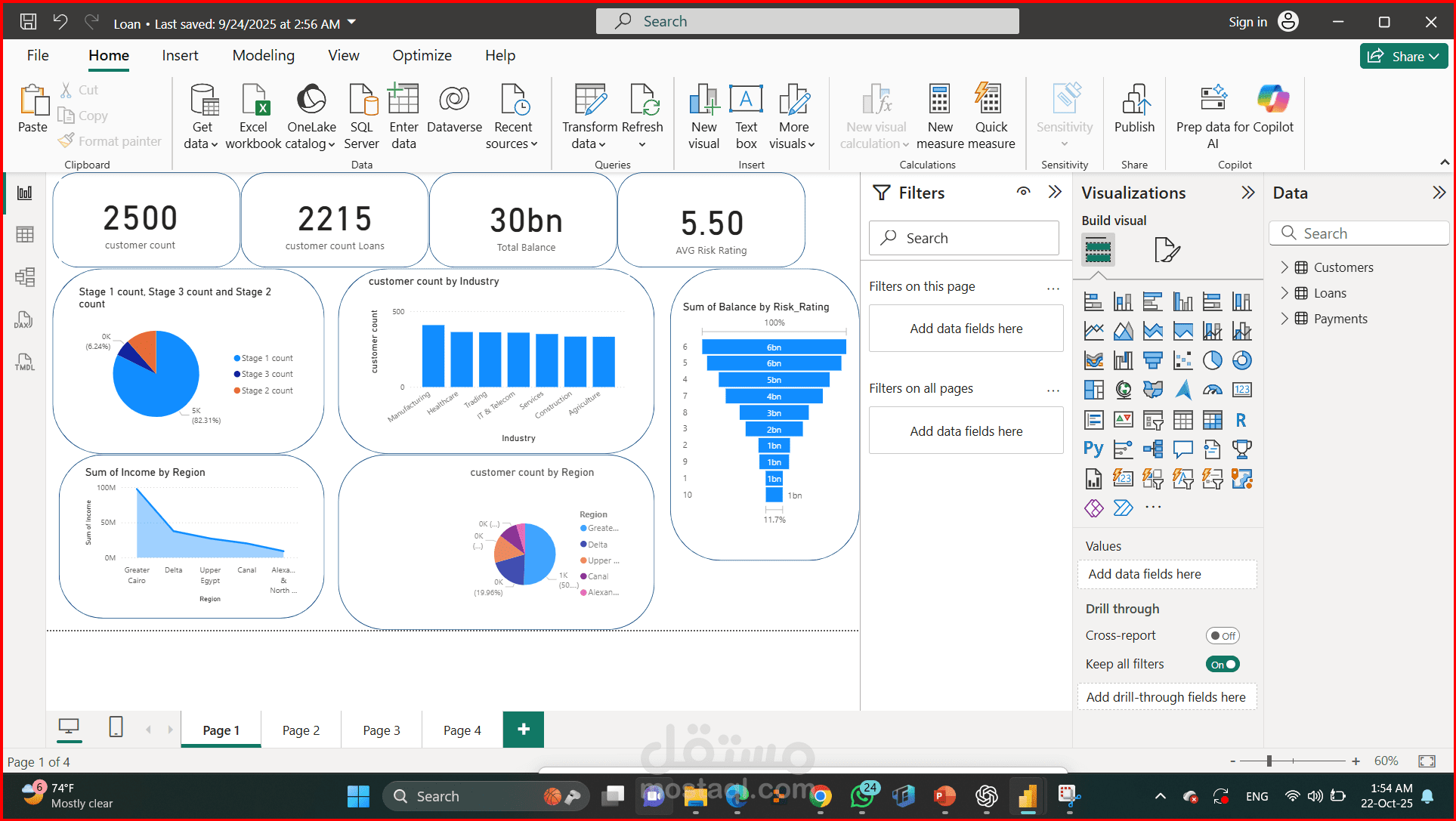 لوحة Power BI لإدارة المخاطر وتحليل الربحية لمحفظة ائتمانية بقيمة 30 مليار