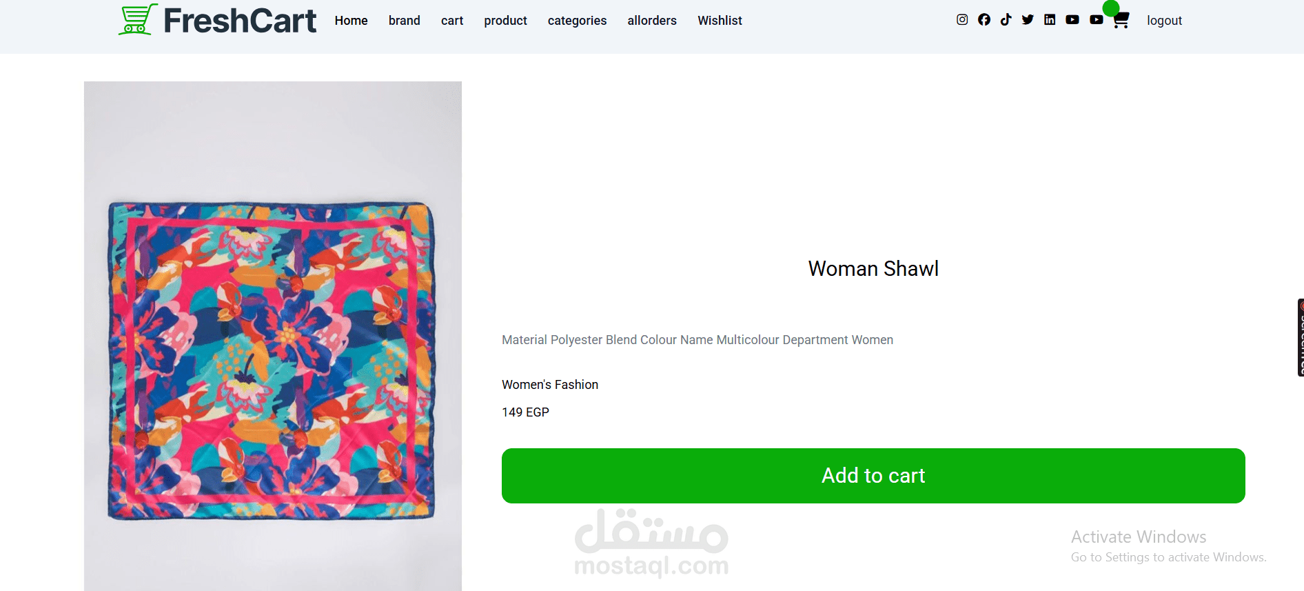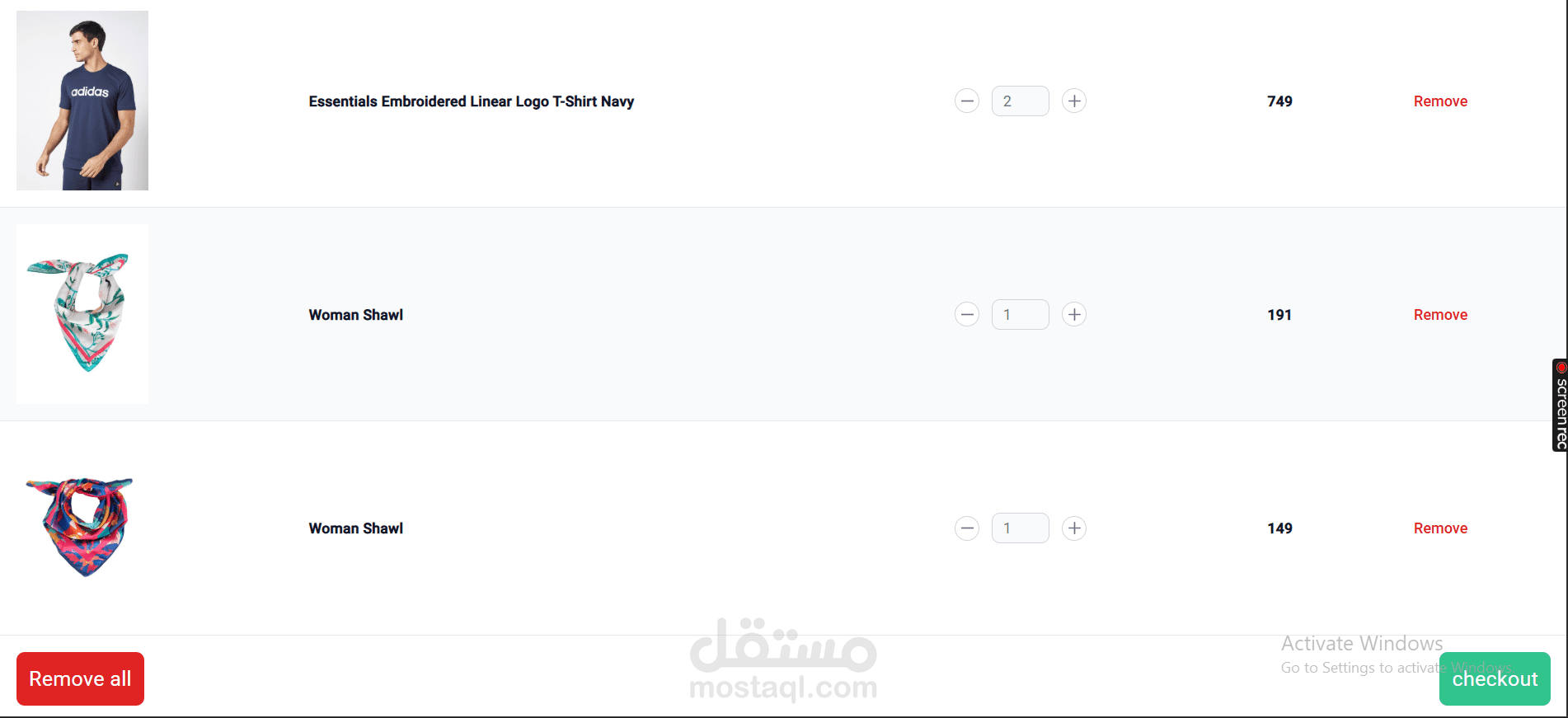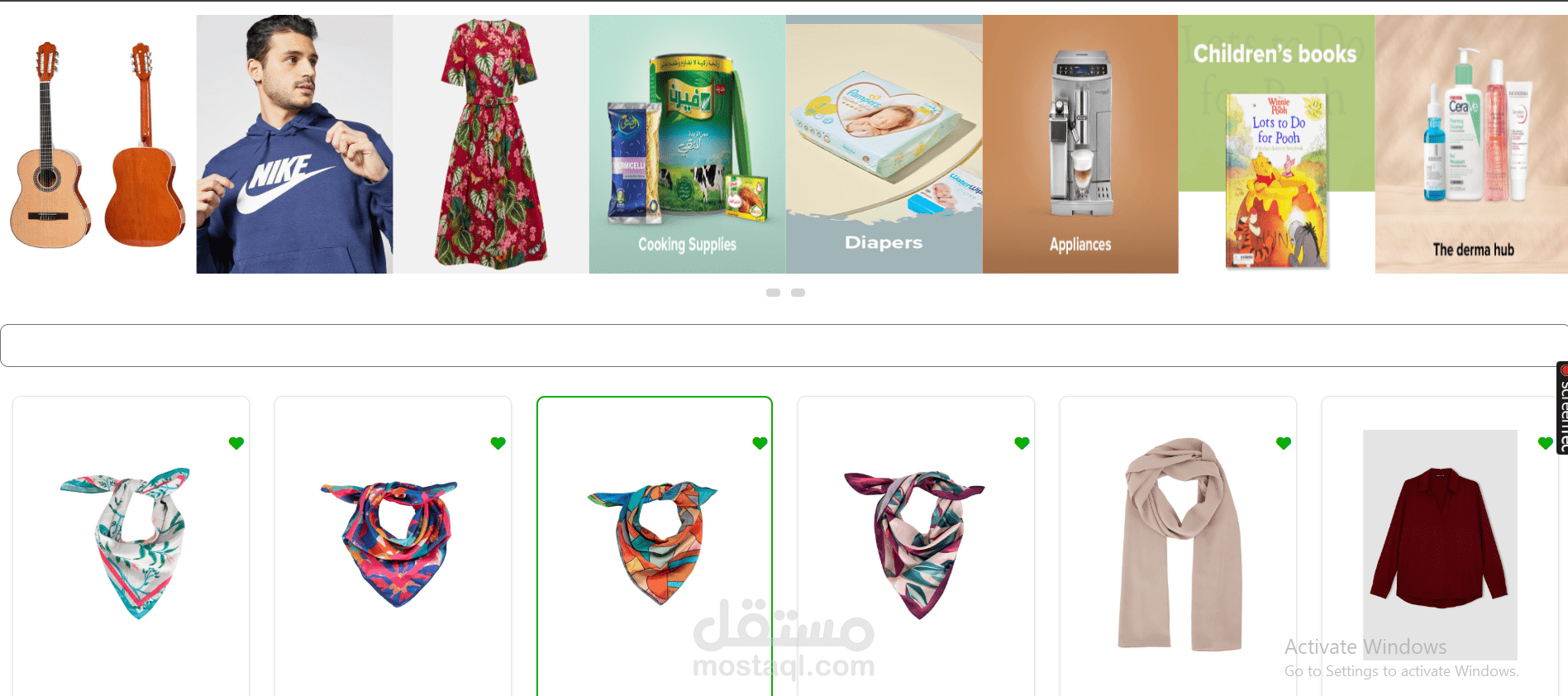 Shopping Cart: إضافة المنتجات للعربة وتحديث الكمية أو حذف العناصر.