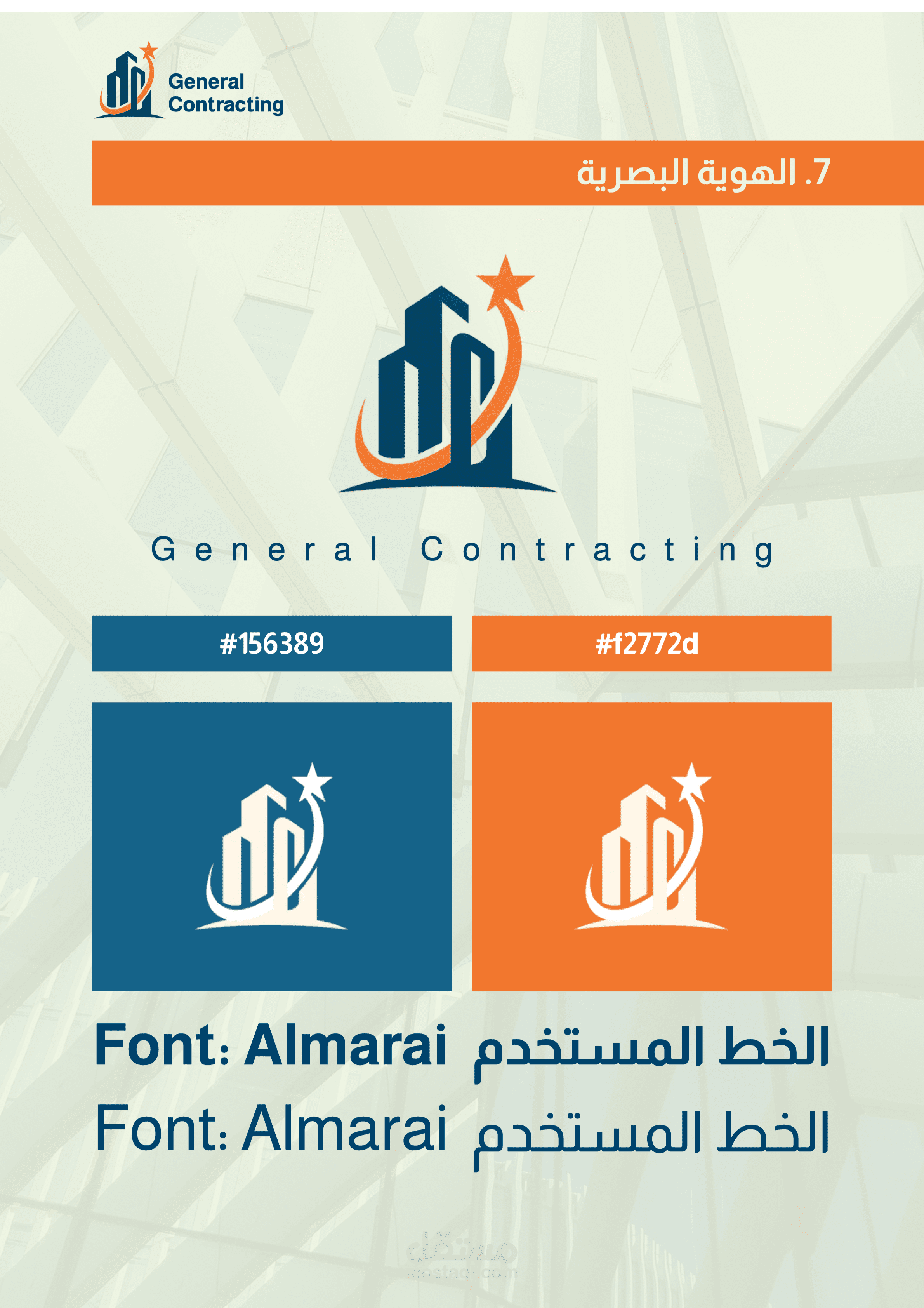 •تصميم بصري وهوية مبدئية تعكس هوية شركة مقاولات حديثة الطابع ومواكبة لرؤية المملكة 2030.