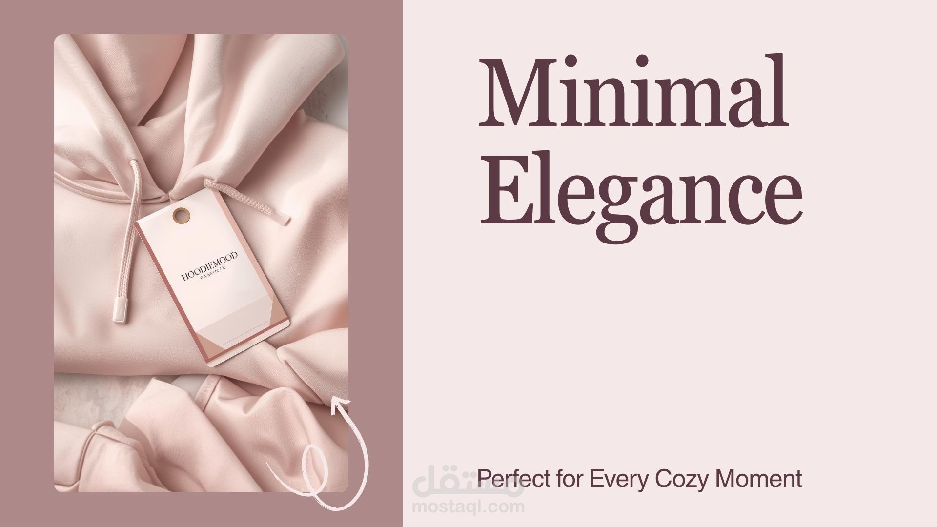 الشعار (اللوغو): تصميم أيقوني حديث يدمج بين شكل الهودي ورمز أنثوي بسيط مثل قلب أو زهرة صغيرة.