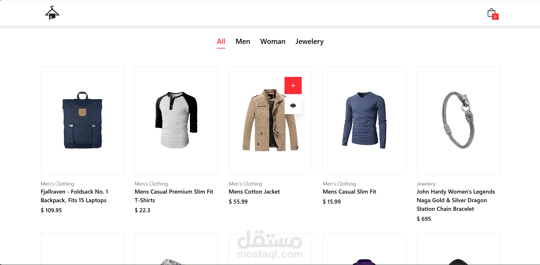 قمت بتطوير متجر إلكتروني متكامل باستخدام React.js وTailwind CSS يتميز بتصميم عصري وسرعة عالية في الأداء.