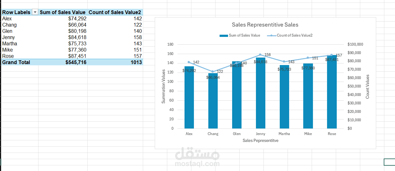 -أداء المندوبين: مقارنة المبيعات بين الموظفين.