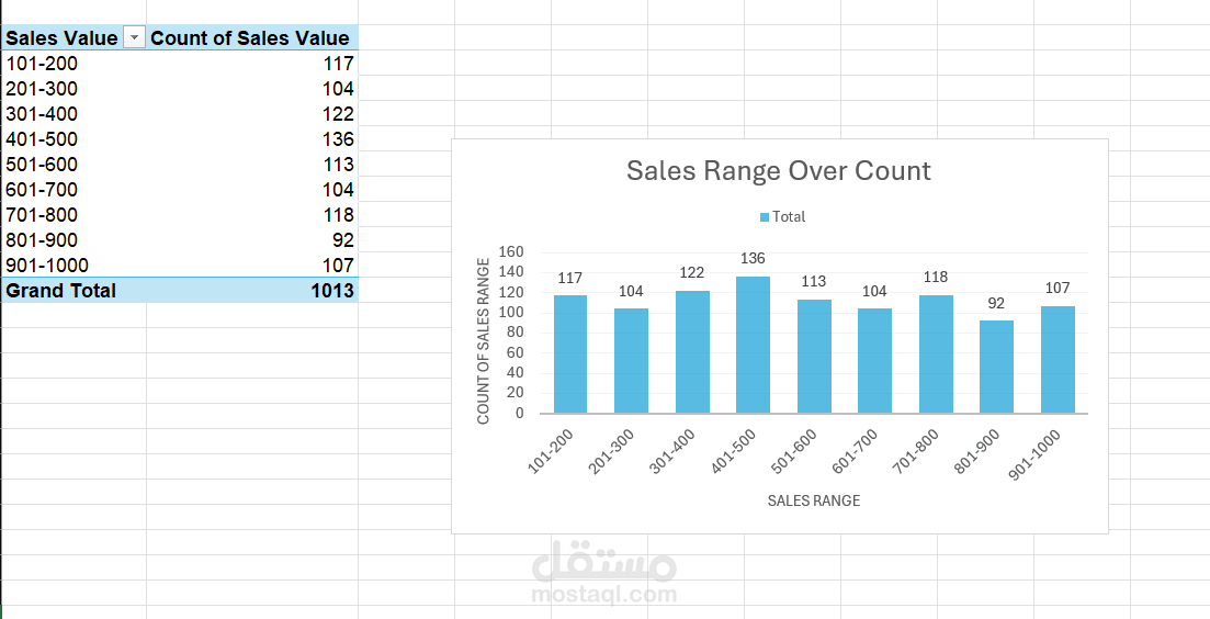 -تحليل شرائح المبيعات: تصنيف الفواتير حسب قيمتها (مثلاً من 100 إلى 200، من 200 إلى 300، وهكذا).