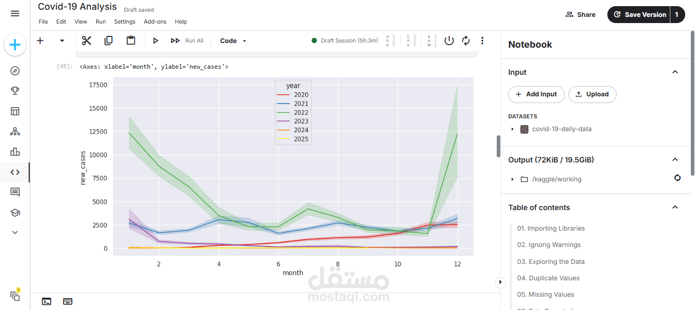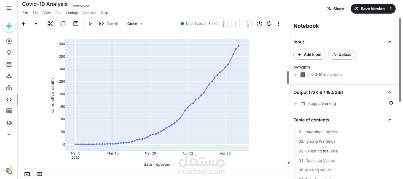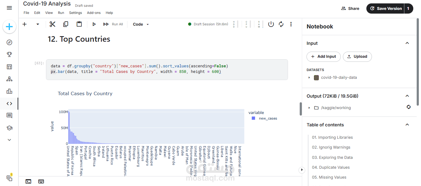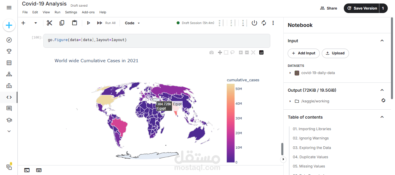 In this project, I performed a comprehensive Exploratory Data Analysis (EDA) on a COVID-19 dataset using Python libraries such as Pandas, NumPy, Matplotlib, Seaborn, and Plotly. The analysis aimed to uncover meaningful insights and answer key questions related to the spread, impact, and trends of the pandemic across different countries and regions. The project involved data cleaning, transformation, visualization, and statistical exploration to provide a deep understanding of the dataset and its patterns.