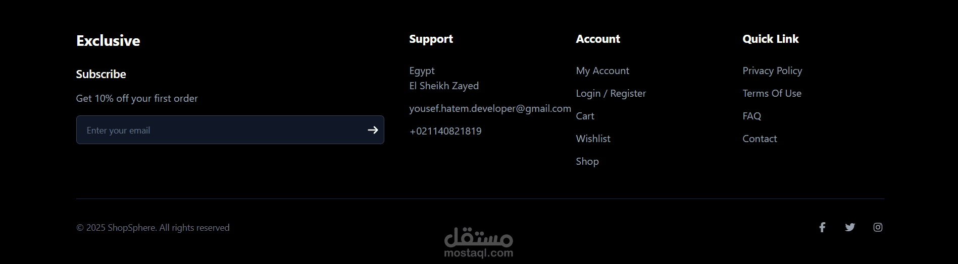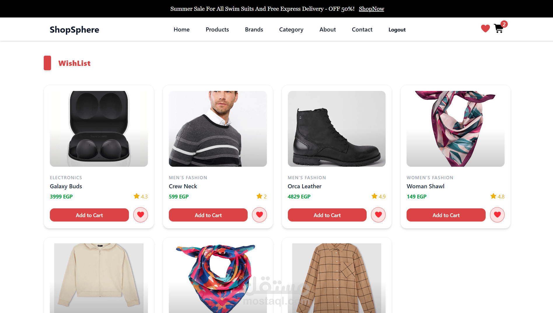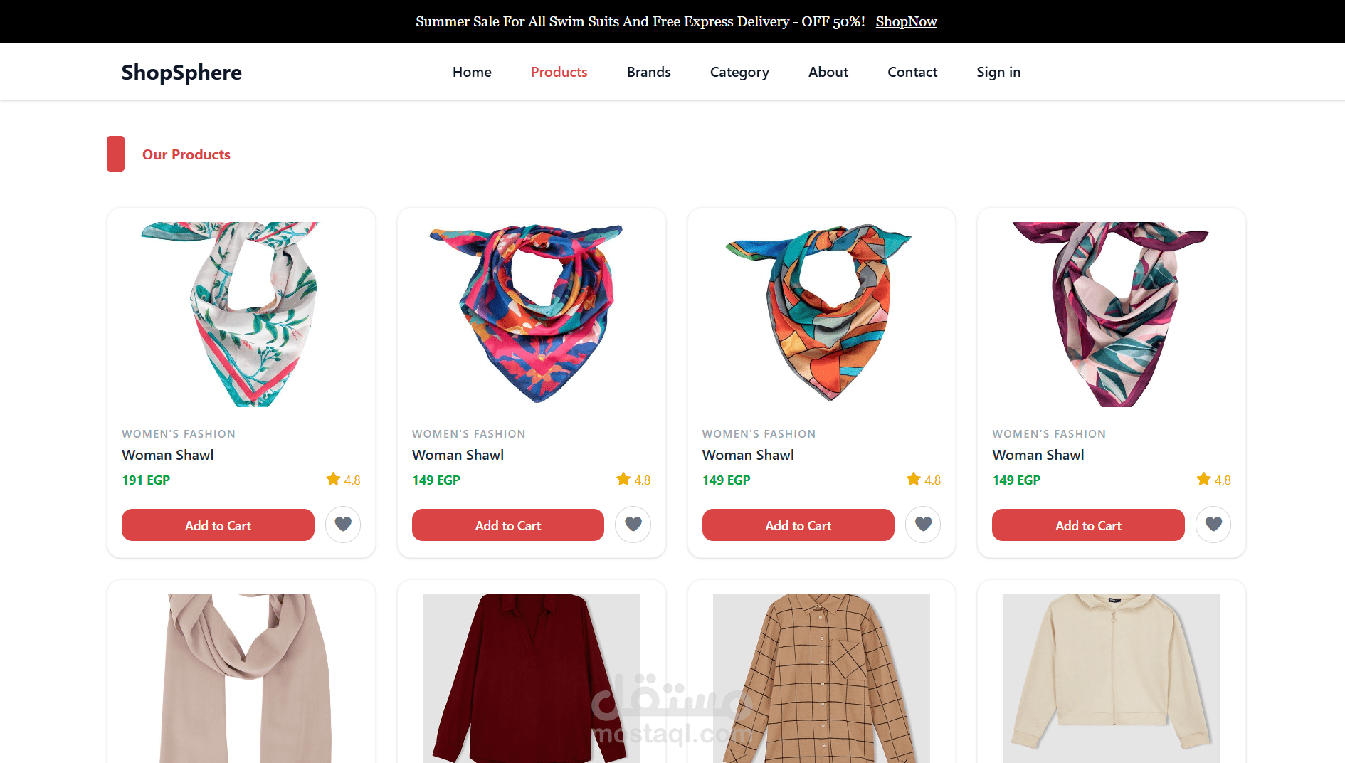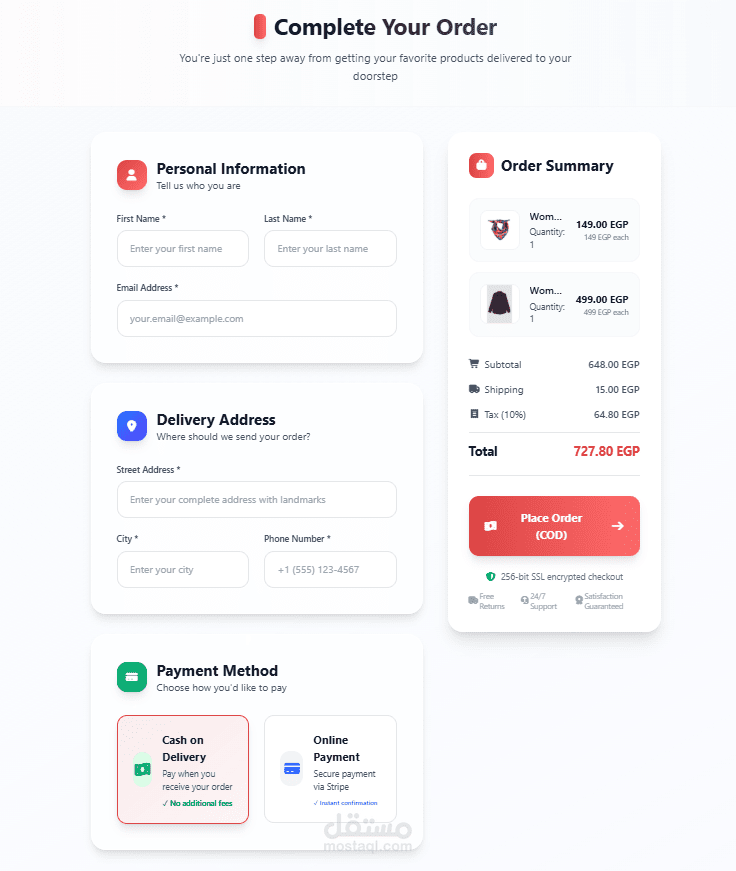منصة تسوق إلكترونية حديثة ومتجاوبة بالكامل، تم تطويرها باستخدام React.js وTailwind CSS.