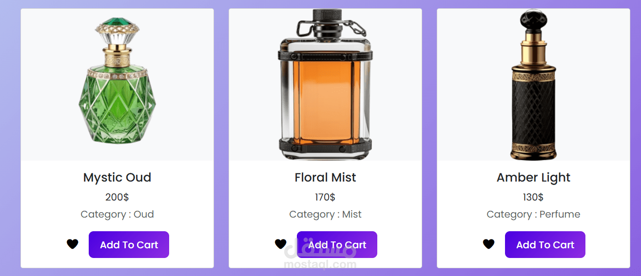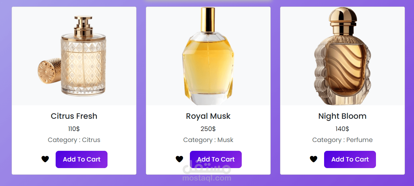 موقع إلكتروني متكامل لمتجر عطور بيقدّم تشكيلة متنوعة من العطور الفاخرة للرجال والنساء. الهدف منه يكون بسيط وسهل لأي مستخدم يدخل يلاقي العطر اللي يناسب ذوقه، يعرف تفاصيله، ويقدر يضيفه للسلة ويكمل طلبه بخطوات بسيطة.