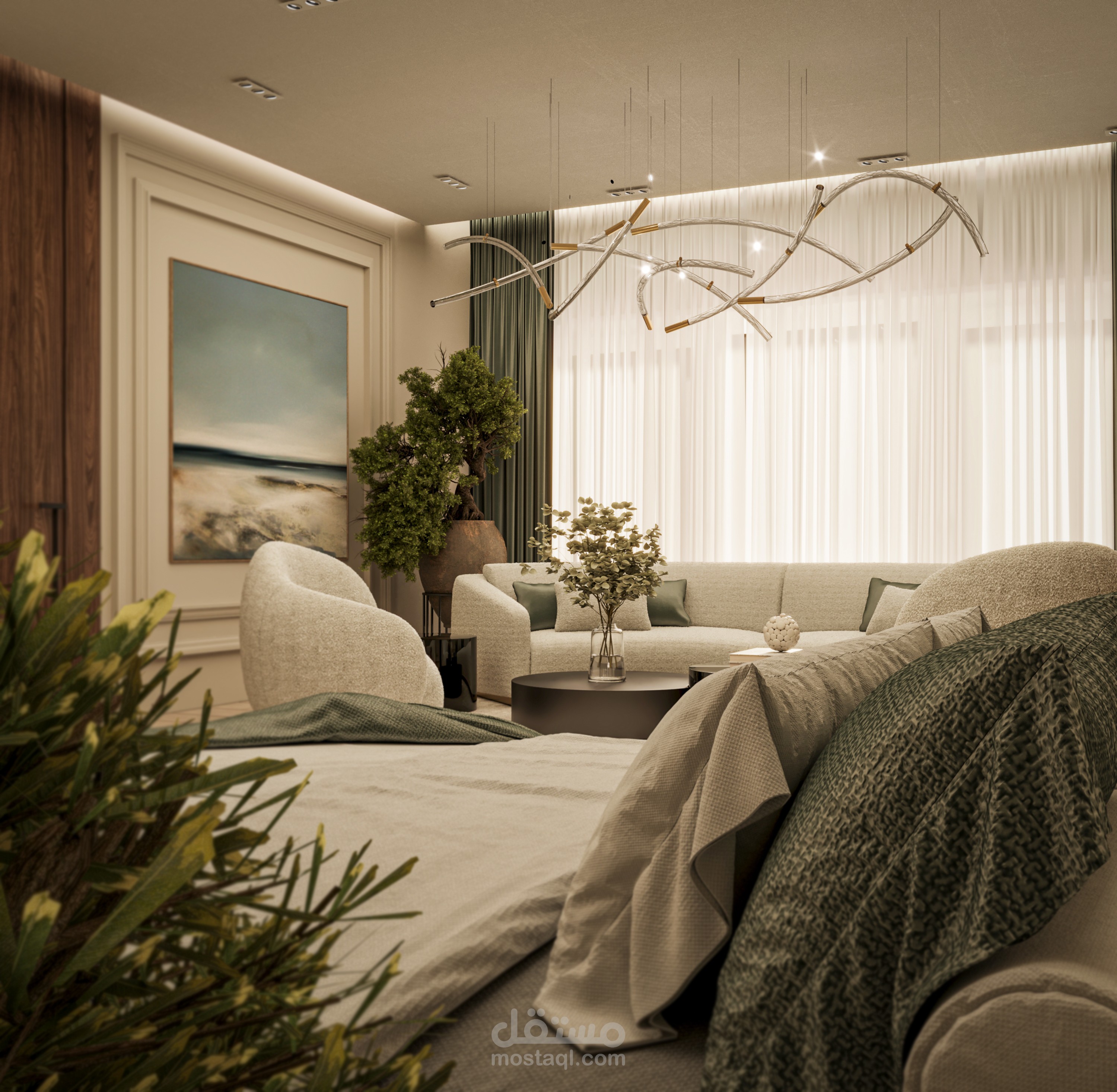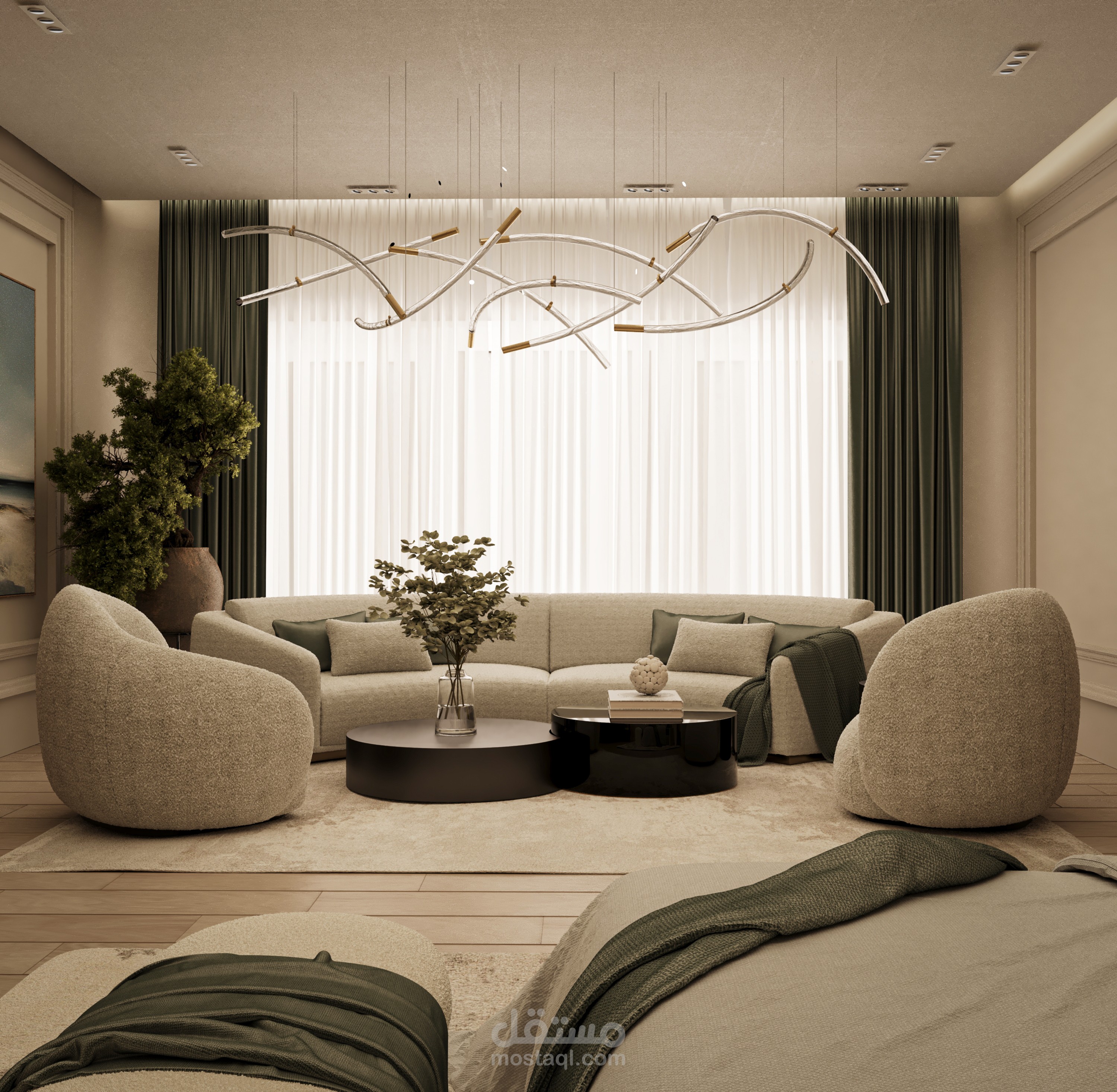 تصميم داخلي فاخر: لمسة من الهدوء والرقي (3D Visualization)