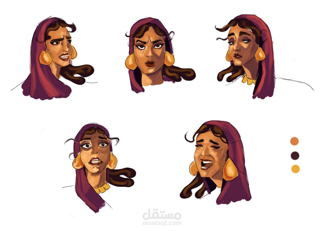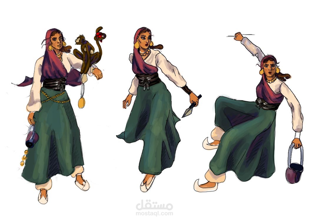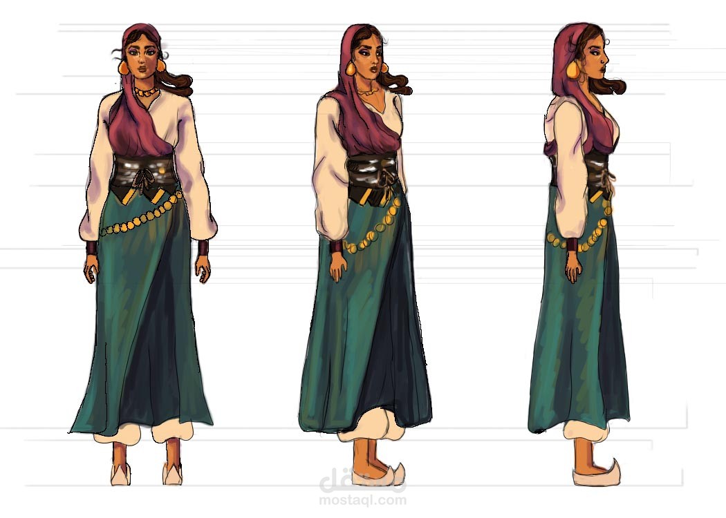 تم العمل على بناء شخصية تحمل طابع مميز وملامح معبّرة، مع الاهتمام بالتفاصيل البصرية مثل الشكل، ألوان الملابس، الشعر، والإكسسوارات التي تعكس شخصيتها وقصتها.