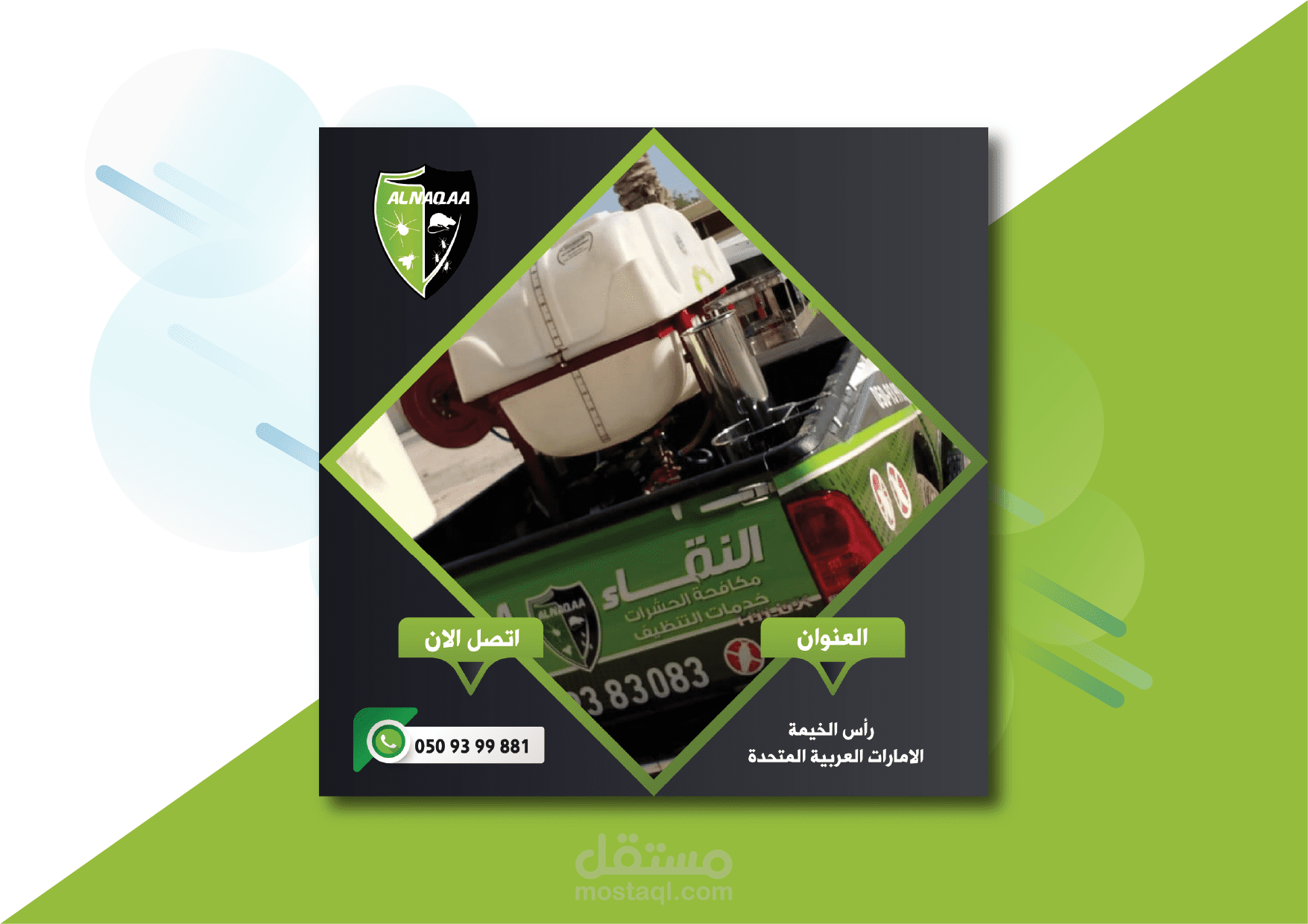تصاميم سوشيال ميديا لشركة النقاء لمكافحة الحشرات والتي تقع فى رأس الخيمة في الإمارات