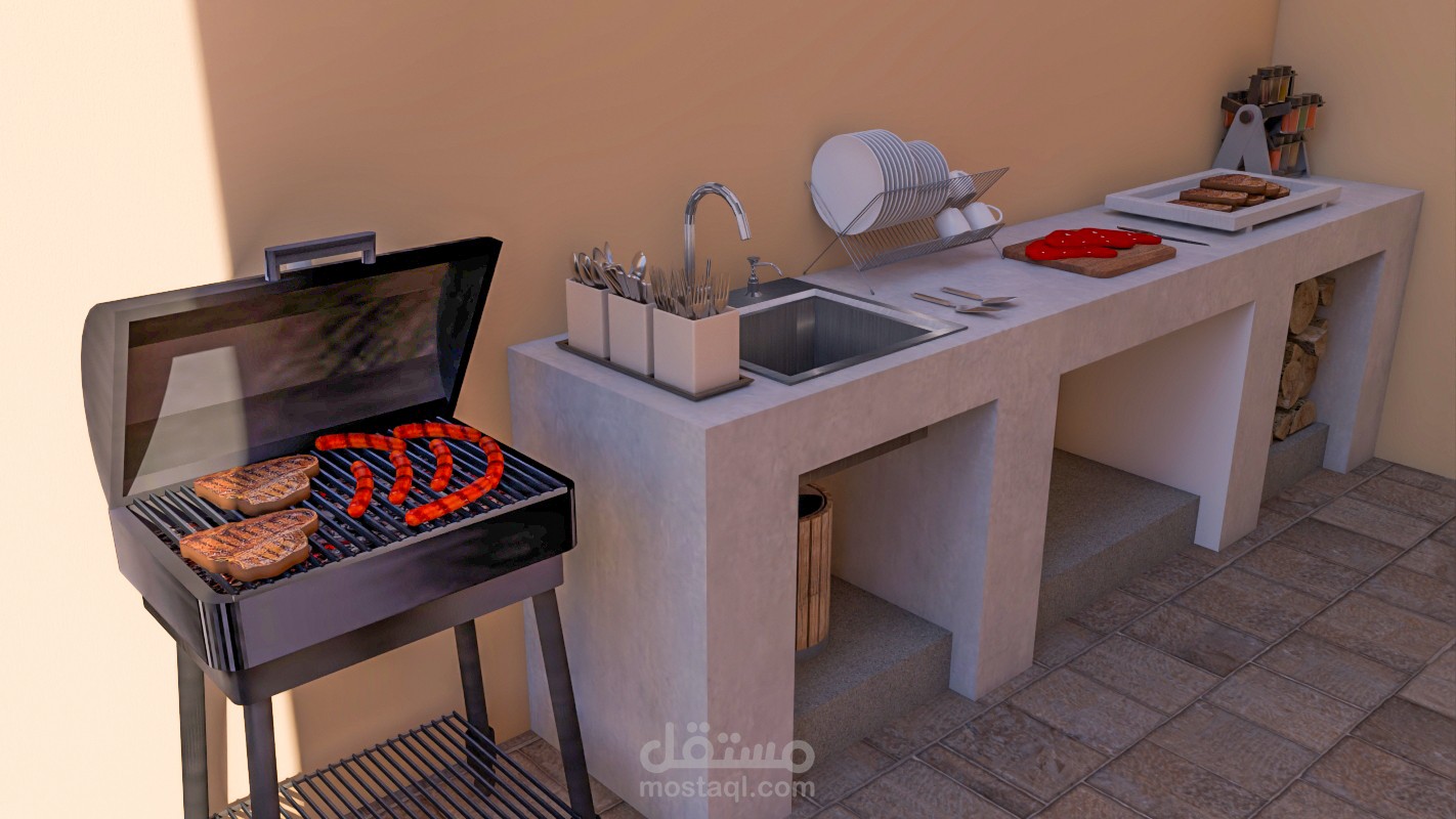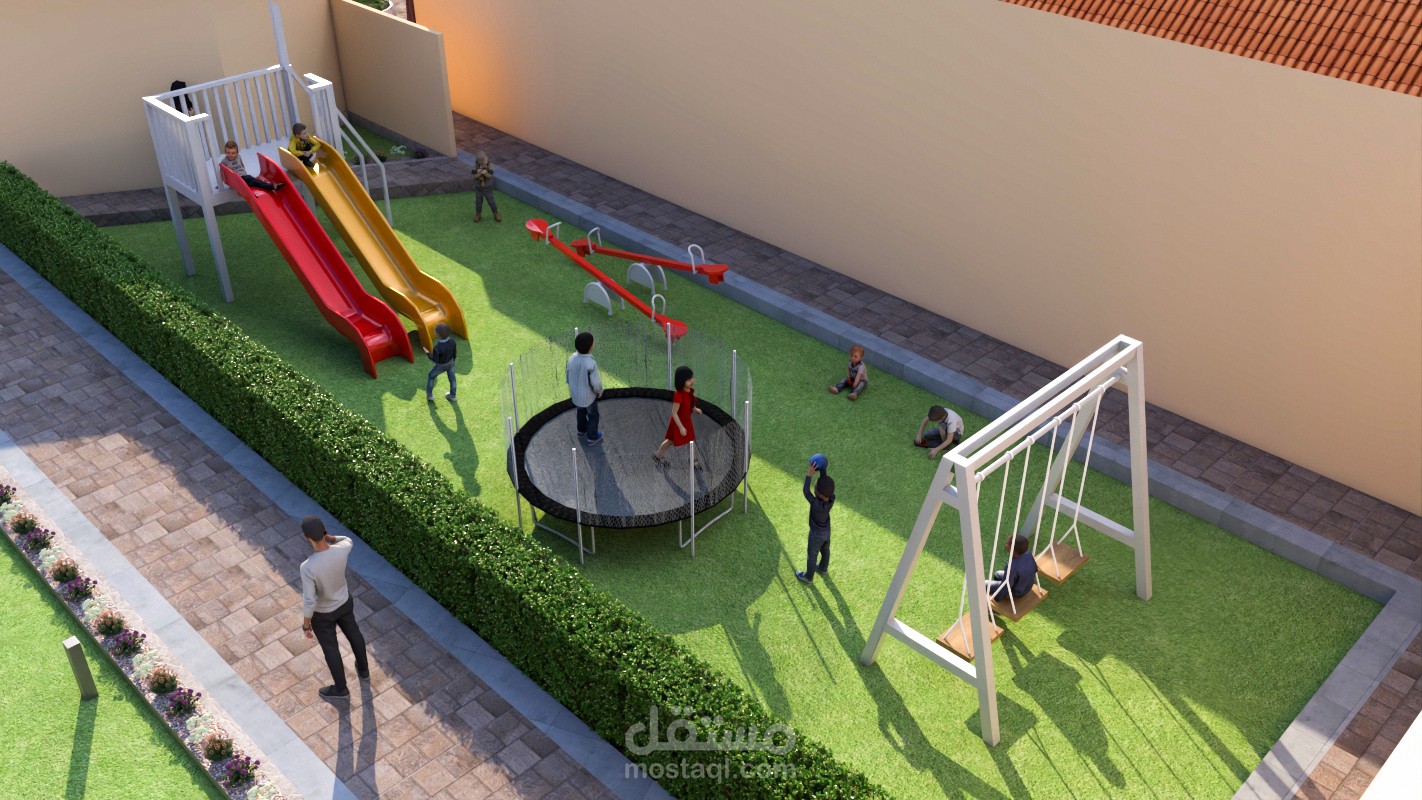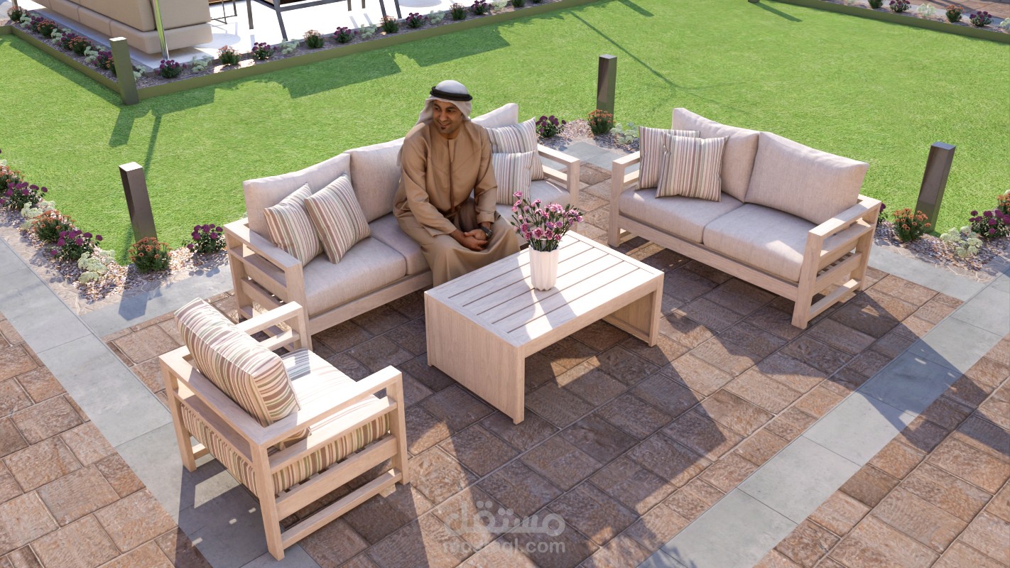 المشروع عبارة عن شاليه قائم به لاندسكيب مطلوب إعادة تصميمه بصور ثلاثية الابعاد
