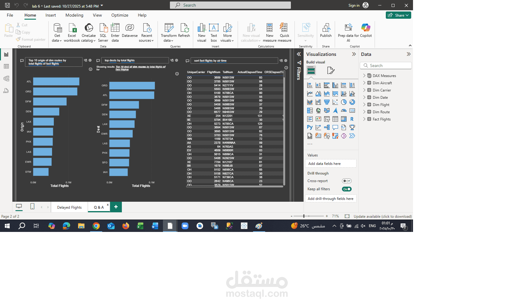 جدول وقائع (Fact_FlightPerformance)