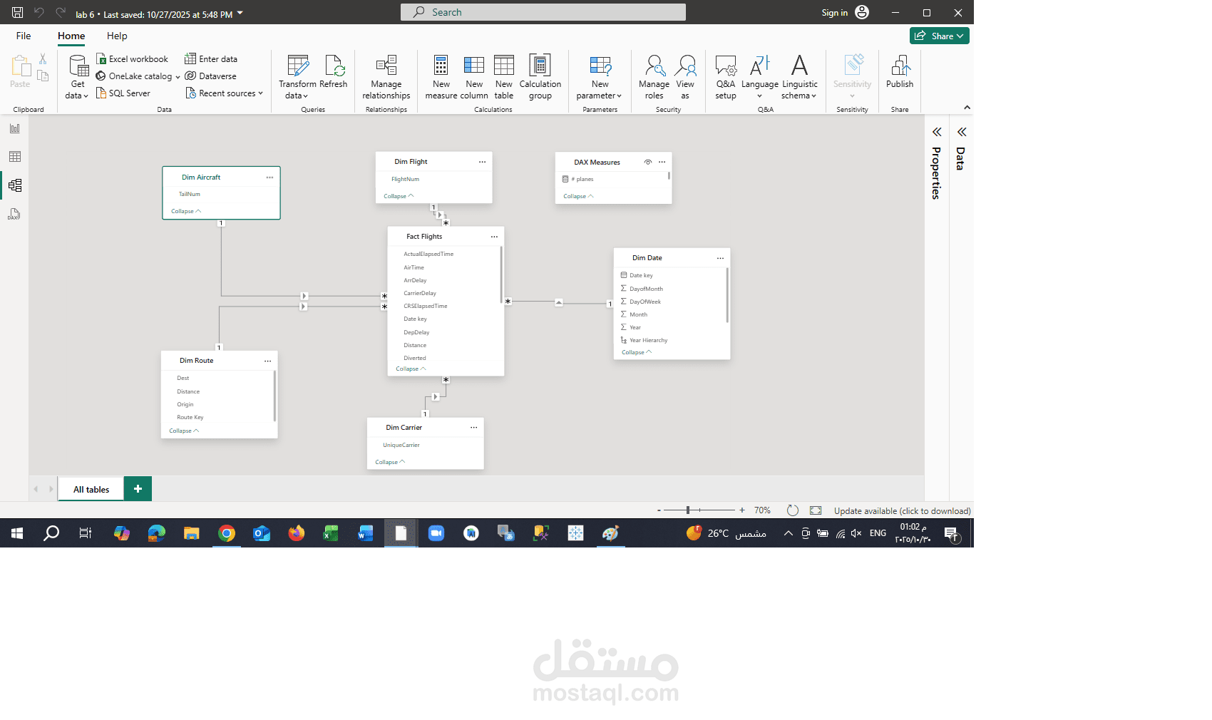 جداول أبعاد (شركات الطيران – المسارات – المطارات – التواريخ – الطائرات)