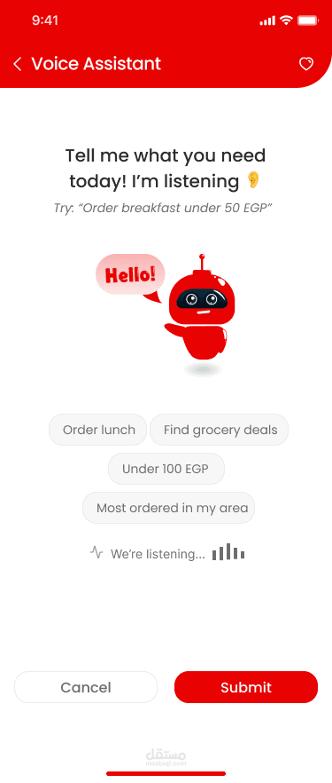 Use voice commands to place quick requests.