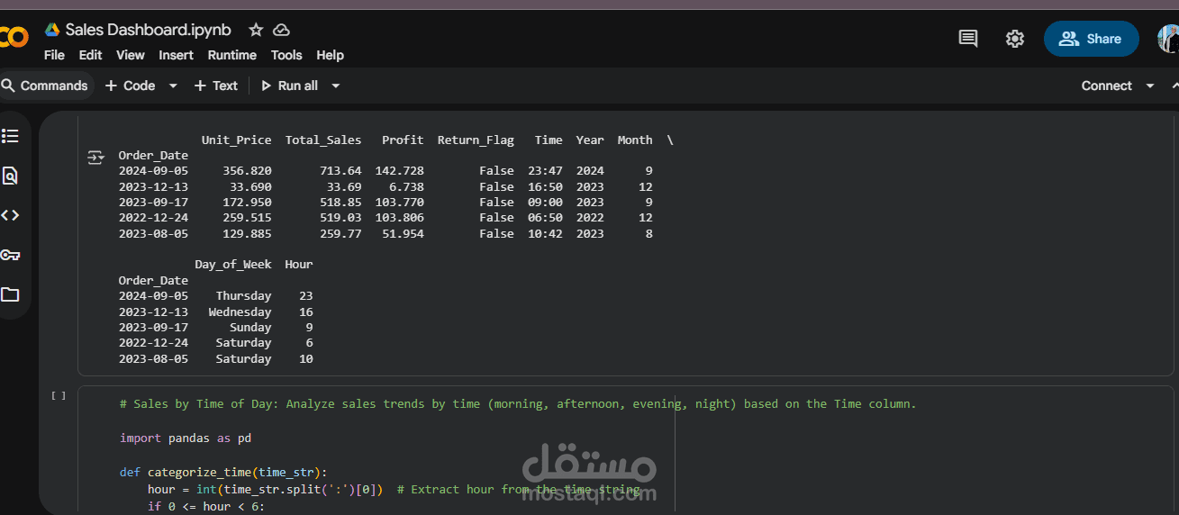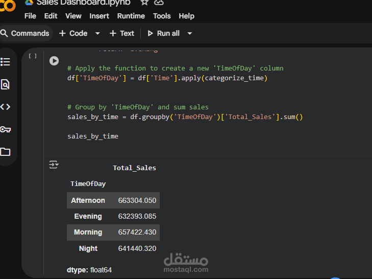 تحليل المبيعات حسب فترات اليوم (صباحًا – ظهرًا – مساءً – ليلًا).