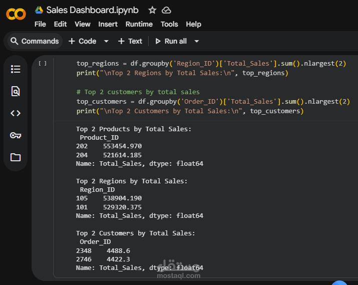 تحديد أفضل المنتجات والمناطق والعملاء من حيث إجمالي المبيعات.