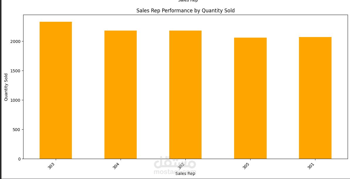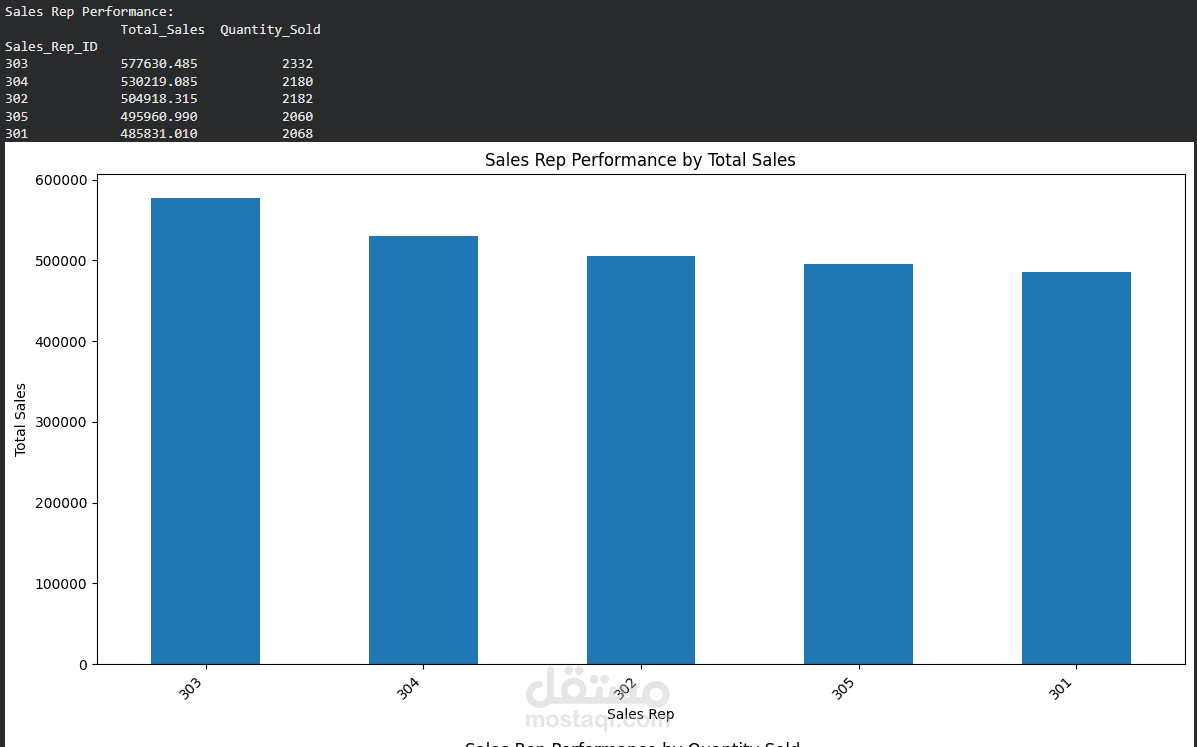 عرض أداء مندوبي المبيعات في ترتيب تنازلي حسب إجمالي المبيعات والكمية المباعة.
