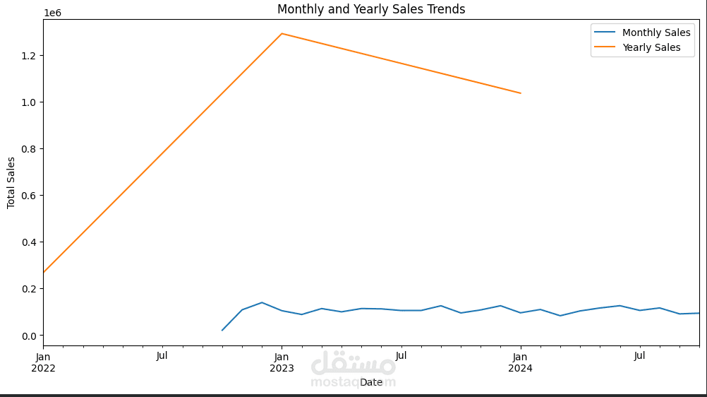 تحليل زمني للمبيعات اليومية والشهرية باستخدام مخططات خطية وتفاعلية.