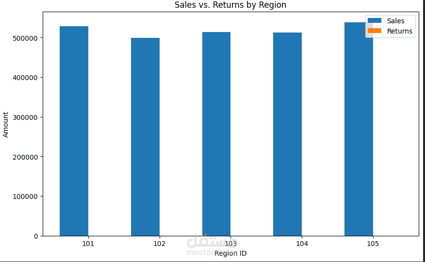 مخطط أعمدة لمقارنة المبيعات والإرجاعات.