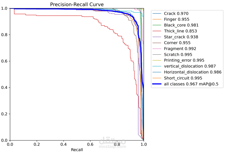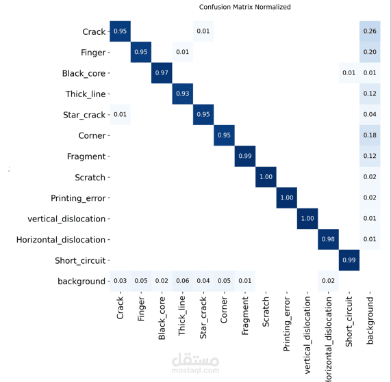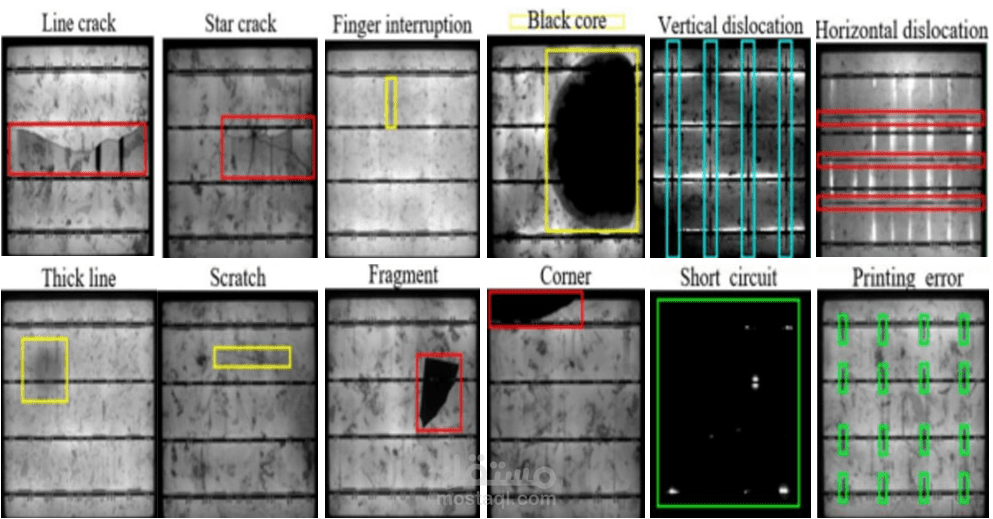 تدريب نموذج YOLOv11 لاكتشاف أنواع متعددة من الأعطال (Crack, Discoloration, Dust, Broken Glass, etc.).