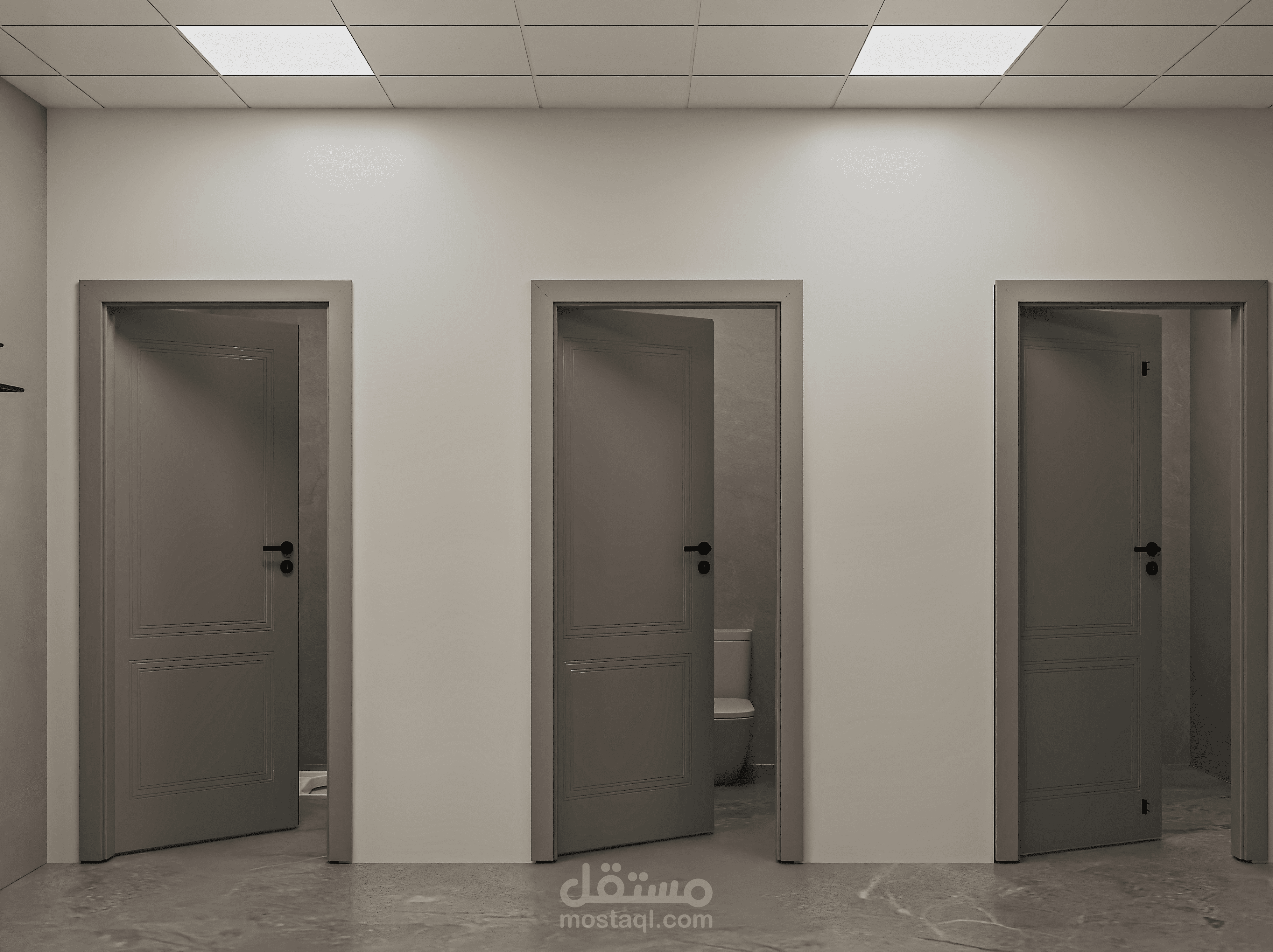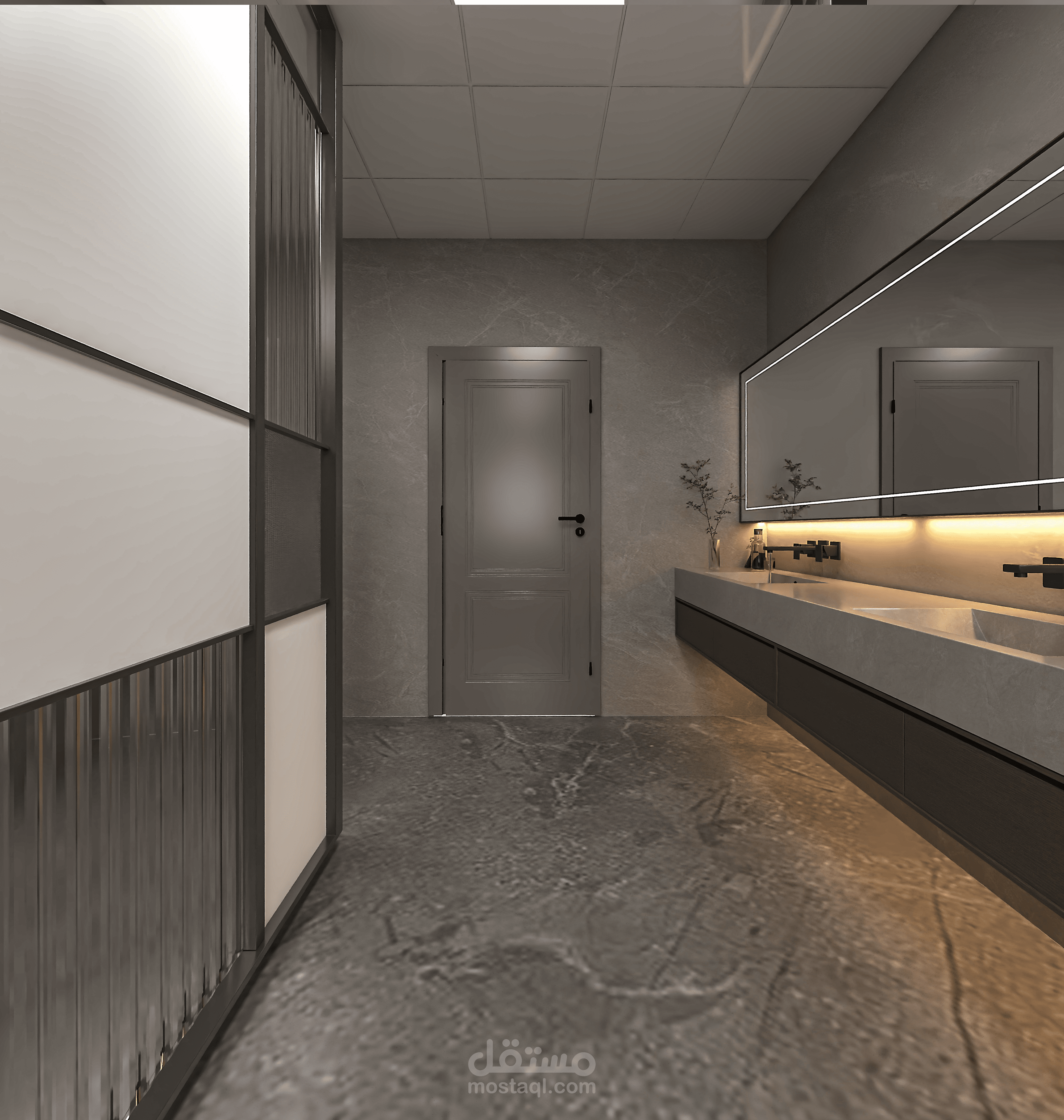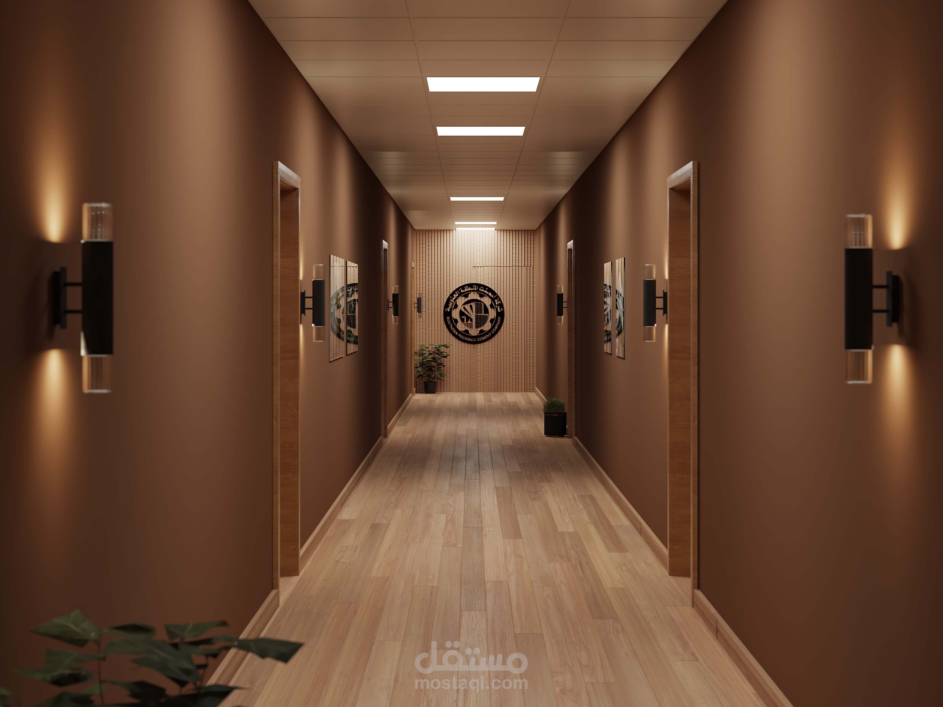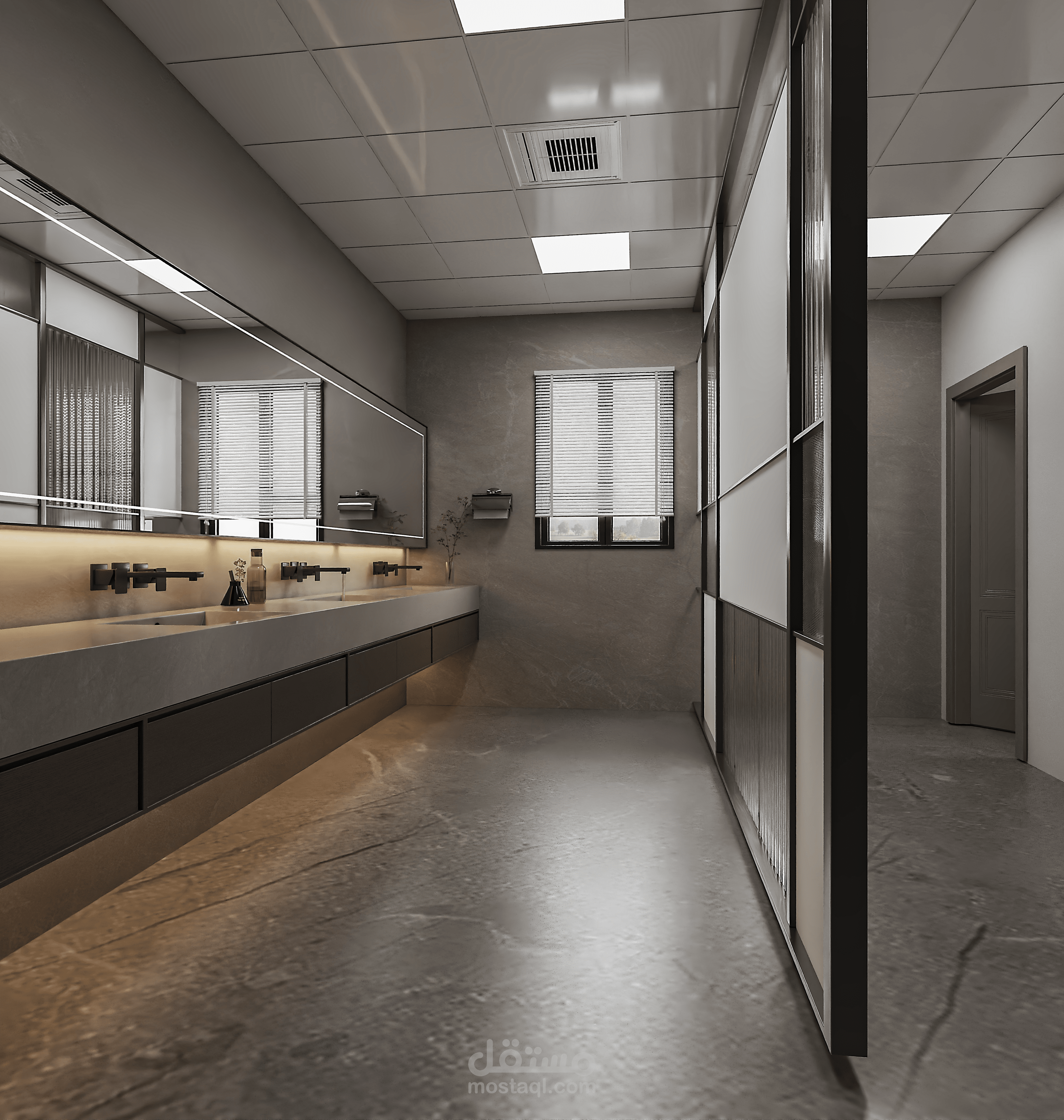 تصميم مكتب لشركة مع الممر والحمام الملحق بها.