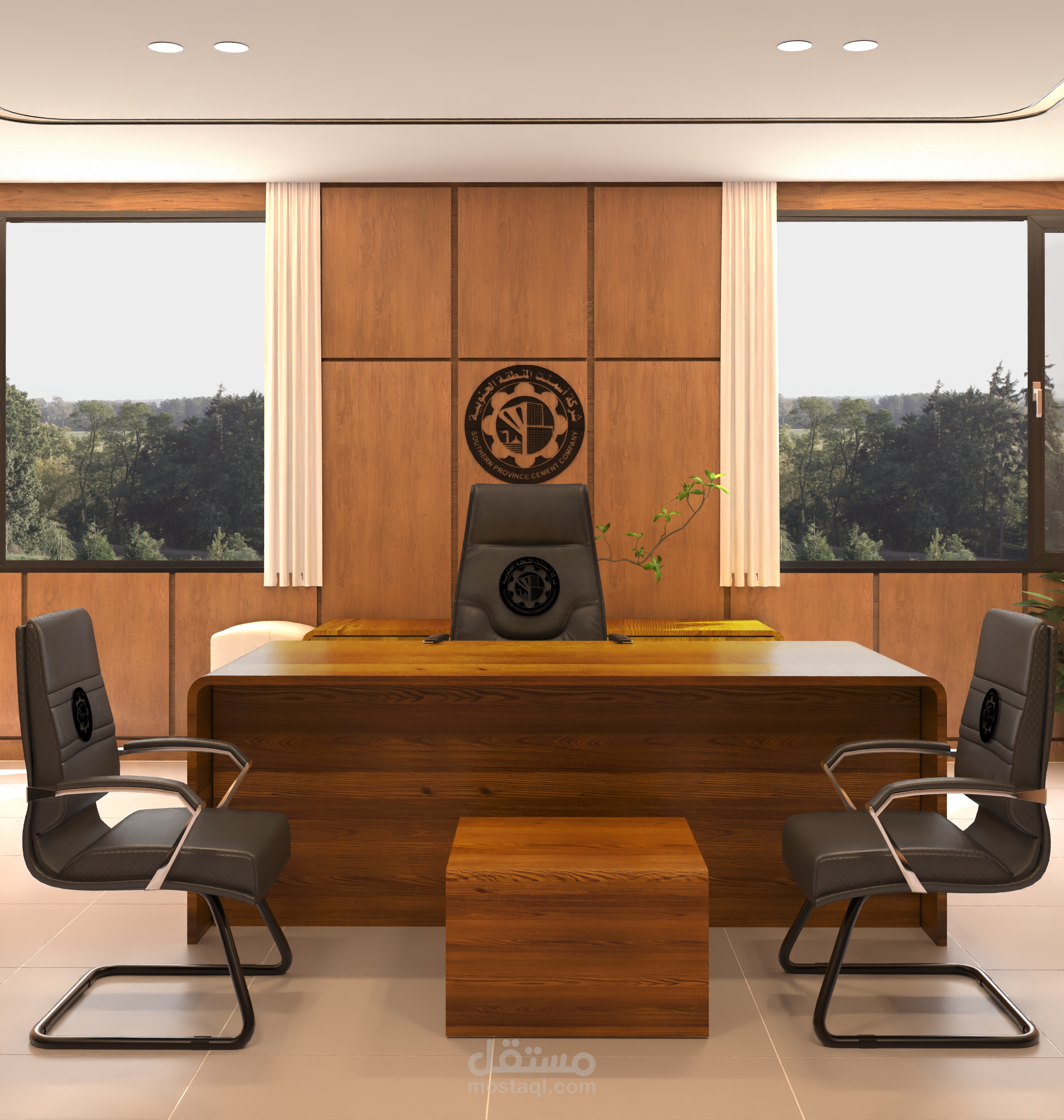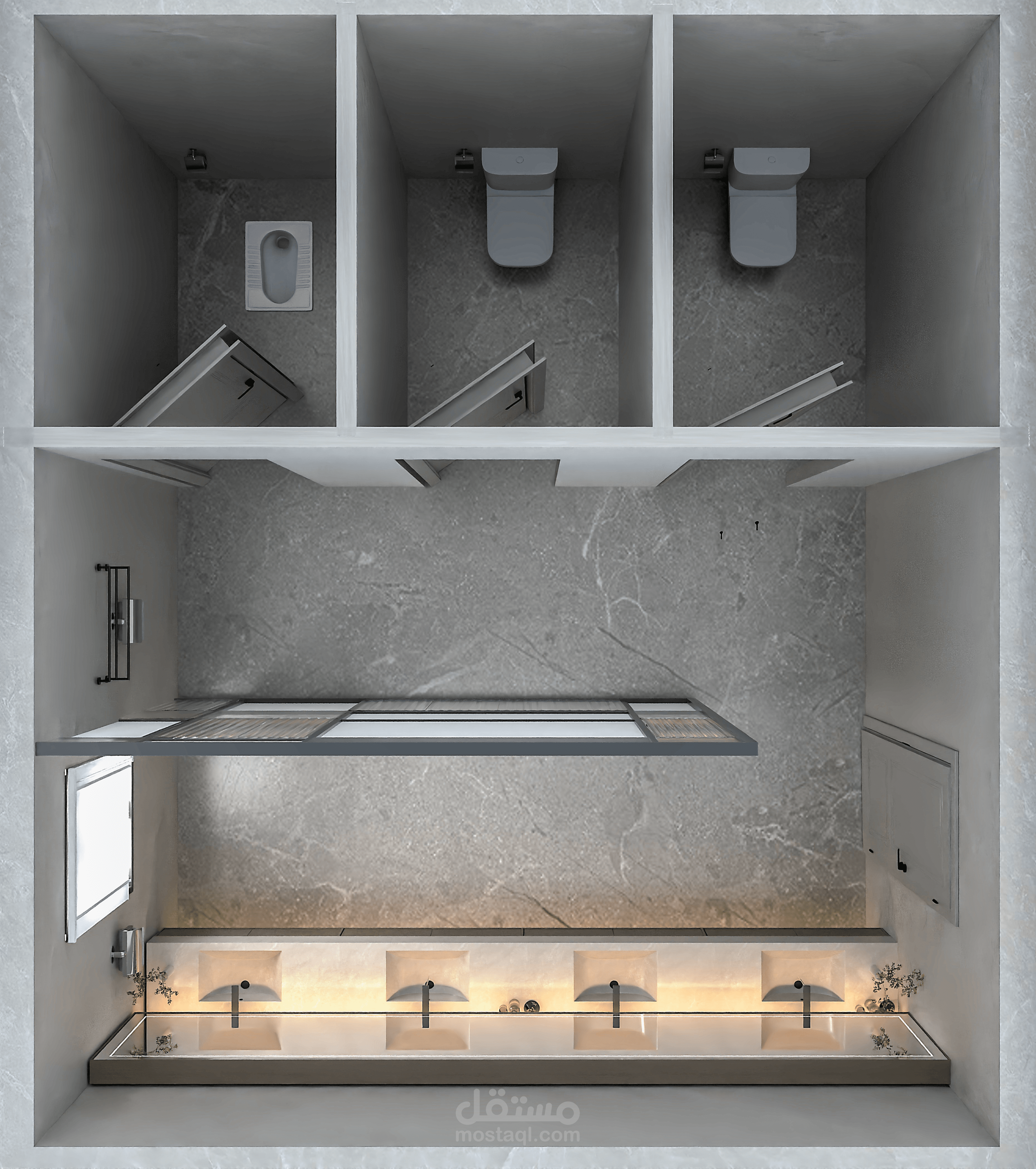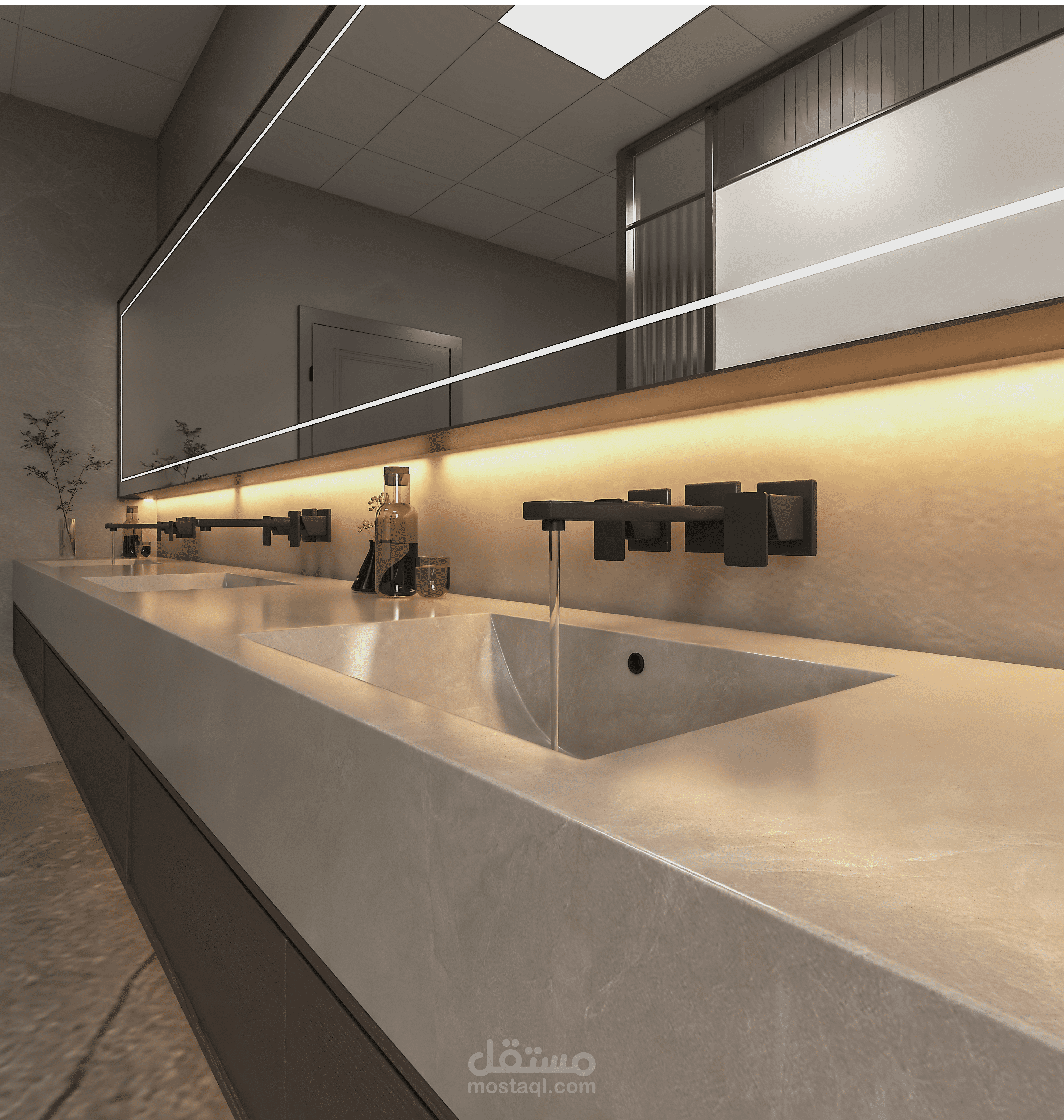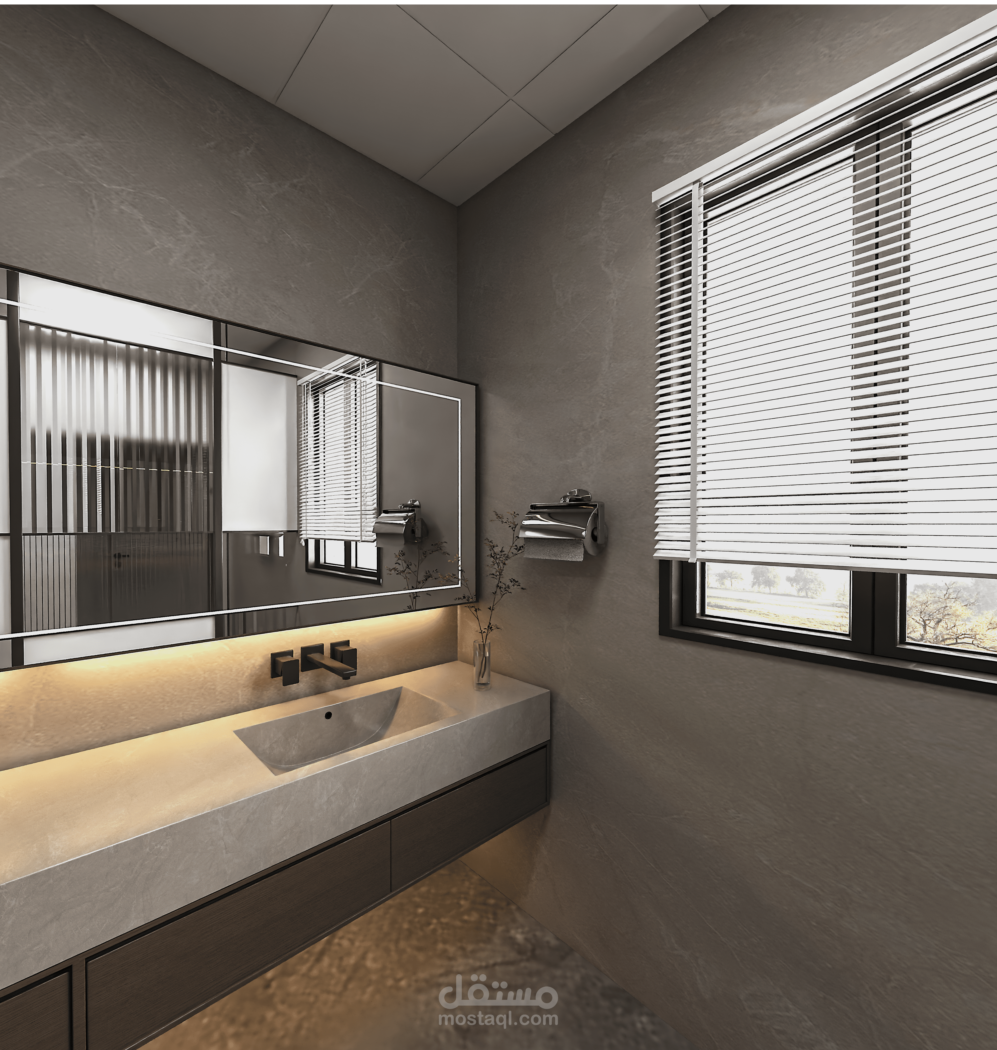 تصميم مكتب لشركة مع الممر والحمام الملحق بها.