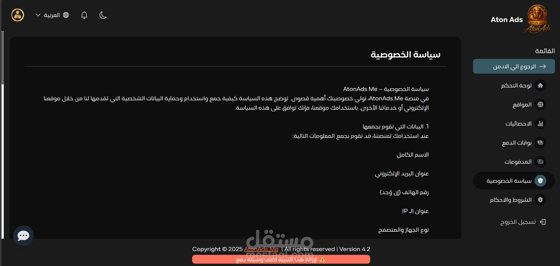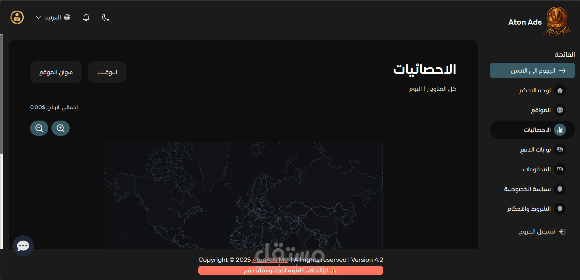 تتبع الأرباح بدقة: تعرض الإيرادات اليومية، الشهرية، والإجمالية بناءً على الزيارات والنقرات.