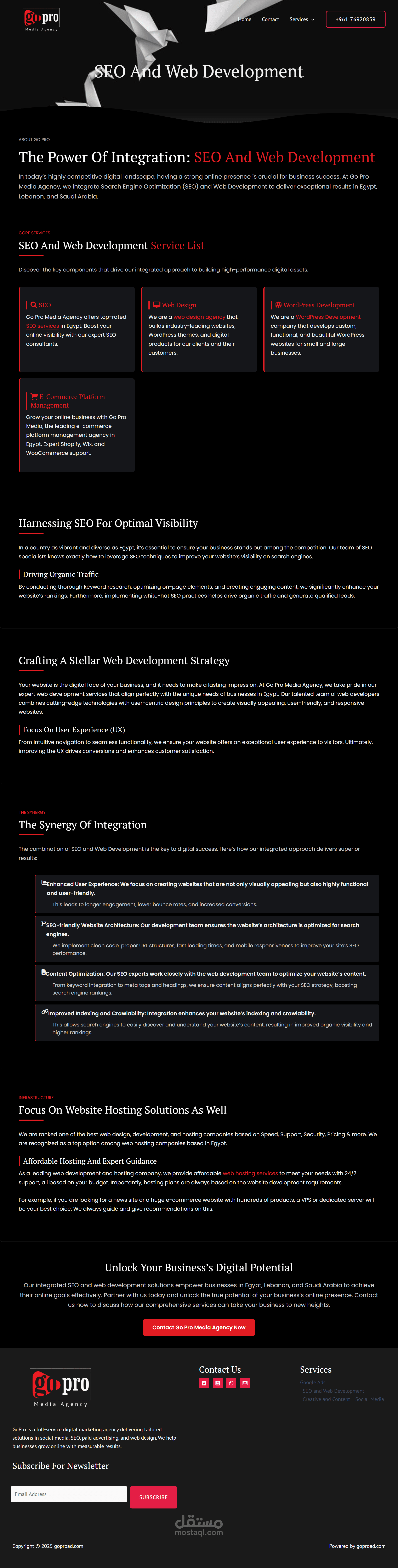 كما تمت مراعاة معايير الـSEO وإضافة نماذج تفاعلية لطلب العروض.