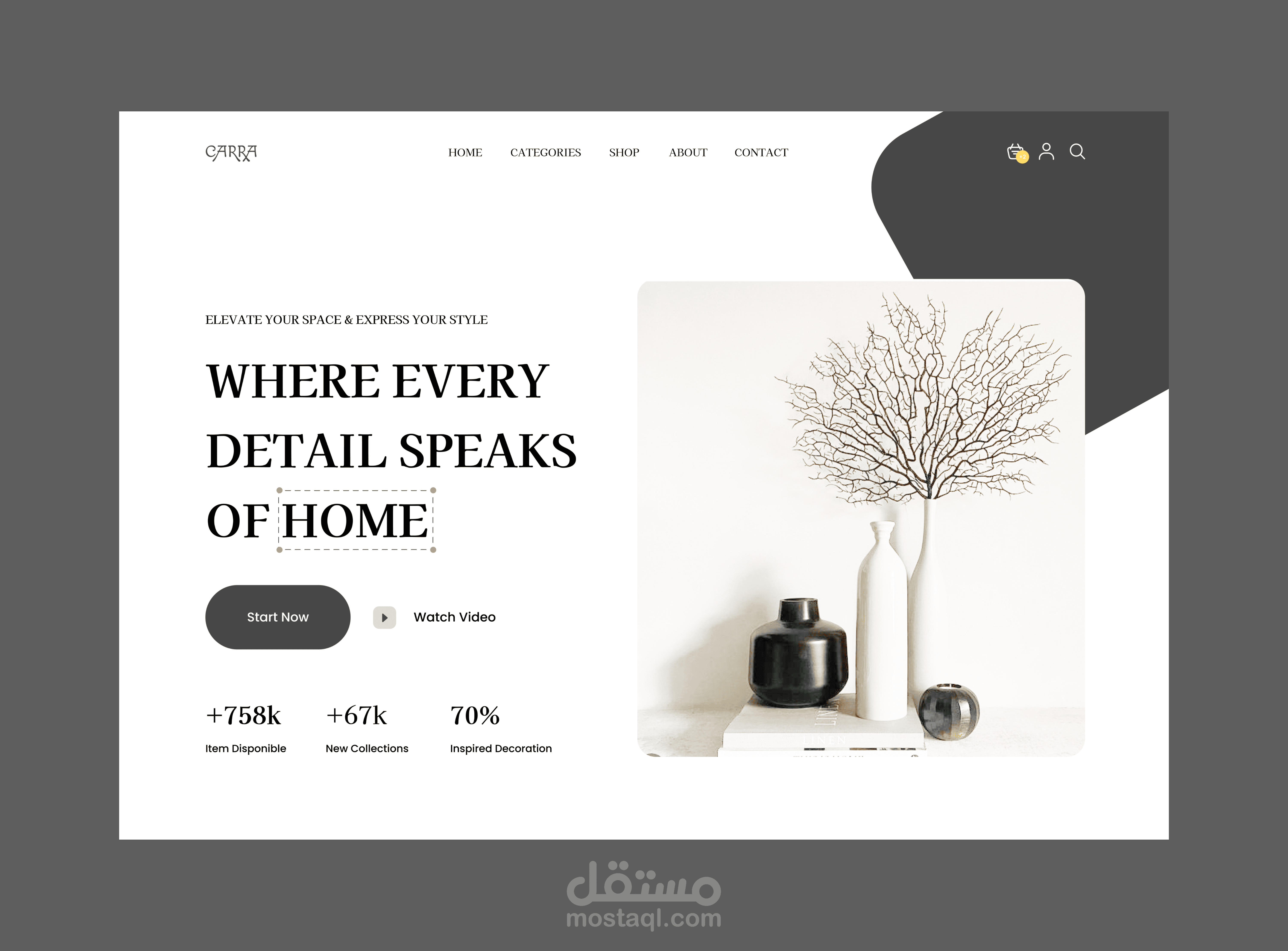 CARRA is a sleek and stylish website design for a modern home décor brand. The concept focuses on elegance, minimalism, and comfort — allowing every product to shine through clean layouts and warm tones.