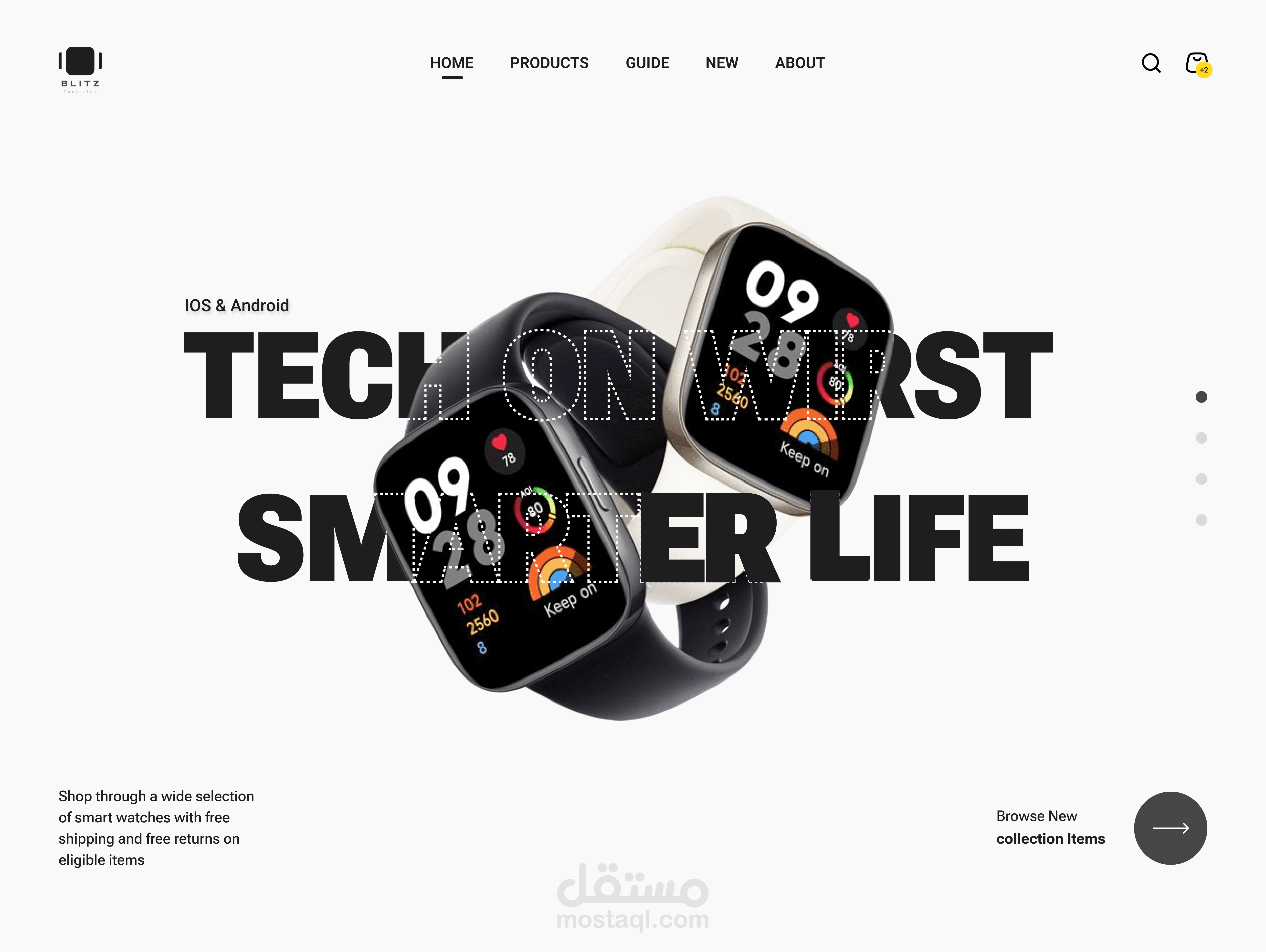 BLITZ is a modern e-commerce website design dedicated to selling smartwatches that combine technology, style, and functionality. The design delivers a futuristic feel with clean layouts, bold typography, and dynamic visuals that highlight every product feature.
