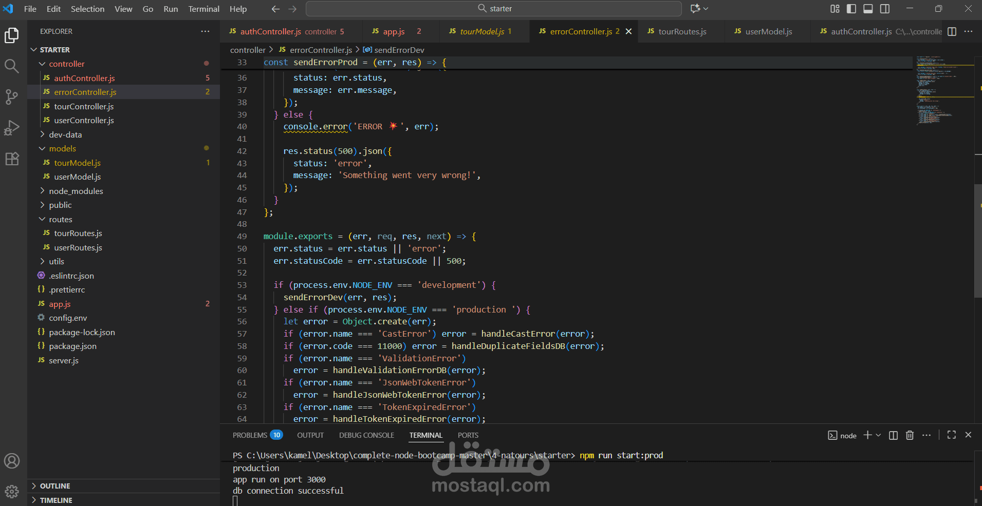 مشروع API احترافي لتطبيق سياحي (Natours App) تم بناؤه بهدف التدريب العملي على تطوير الأنظمة الخلفية باستخدام Node.js و Express.js و MongoDB.