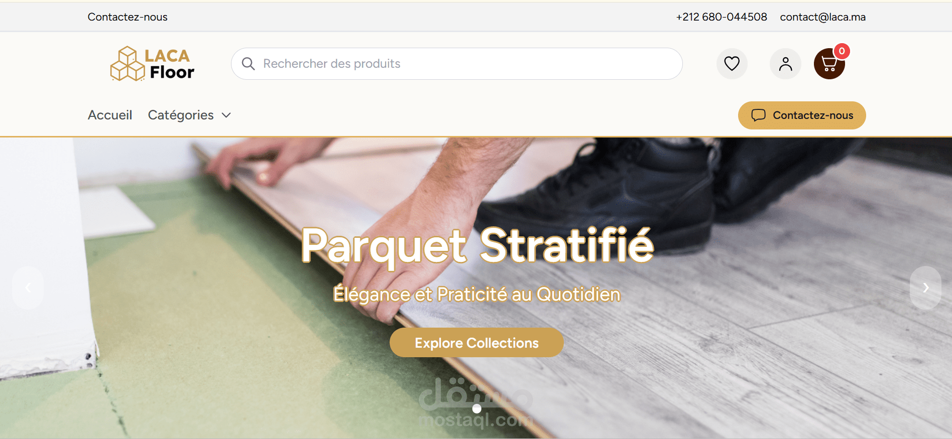 قمت بتصميم وتطوير متجر إلكتروني حديث لشركة LACA.com المتخصصة في بيع الأرضيات الخشبية عالية الجودة ومواد الديكور الداخلي.