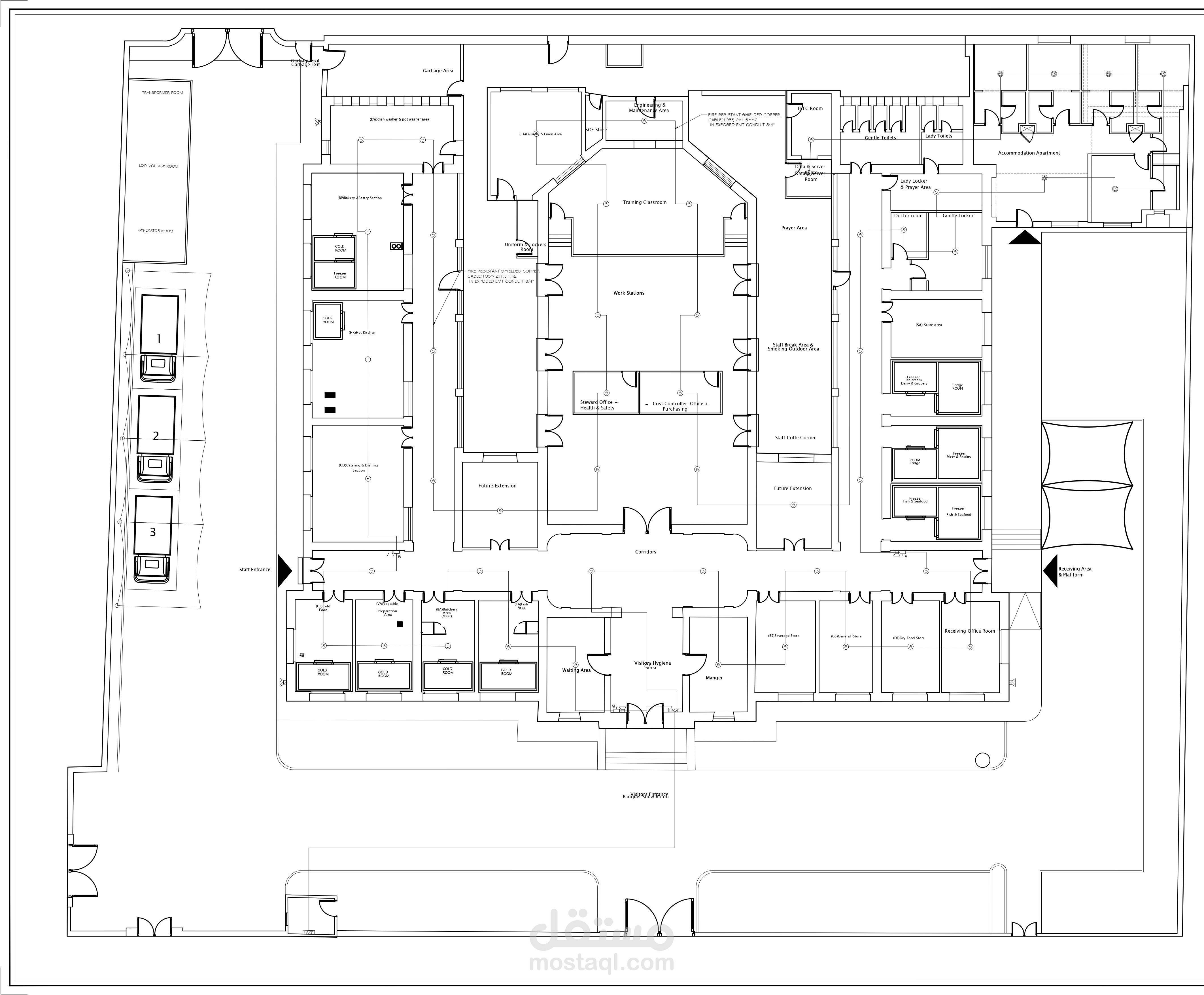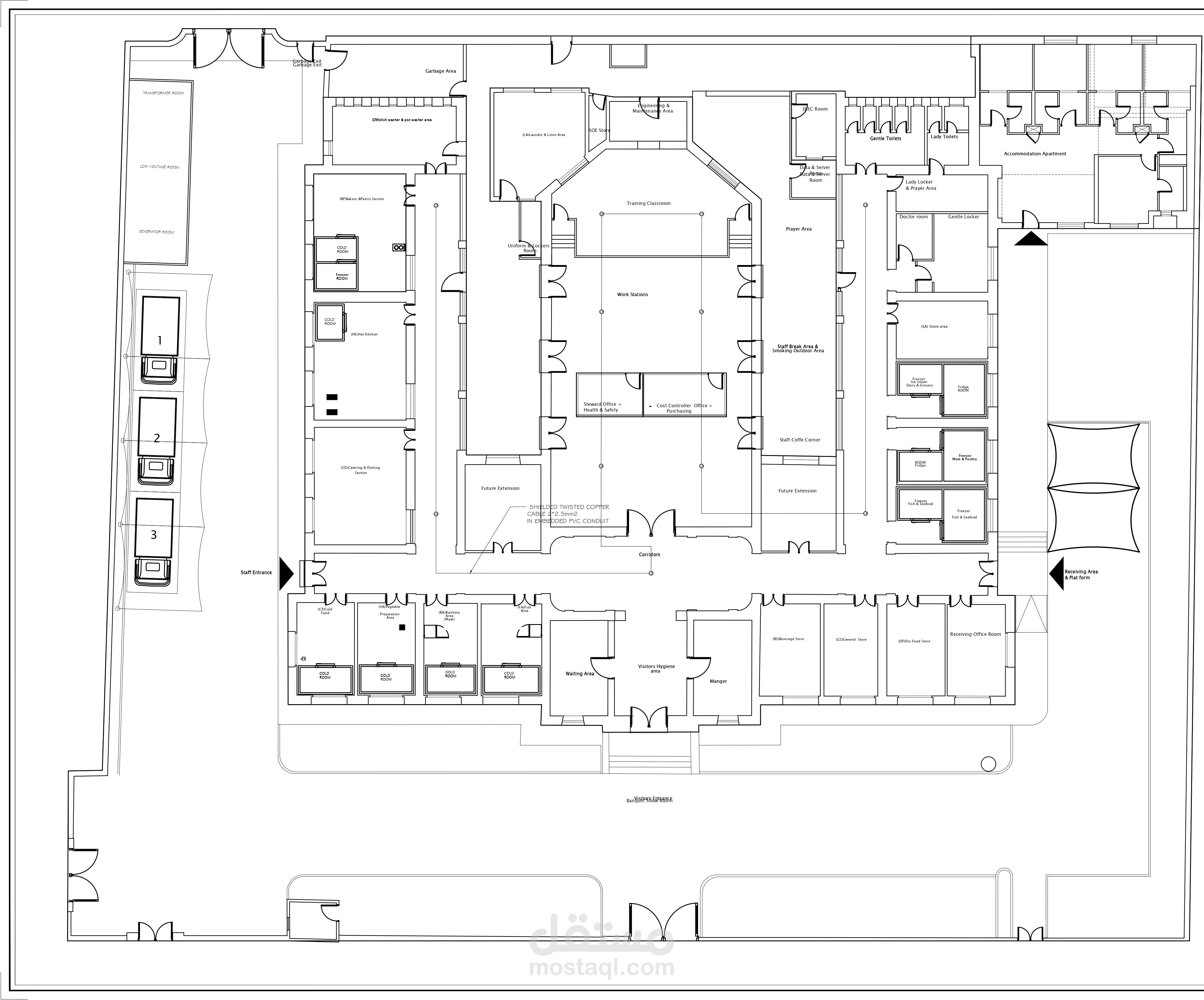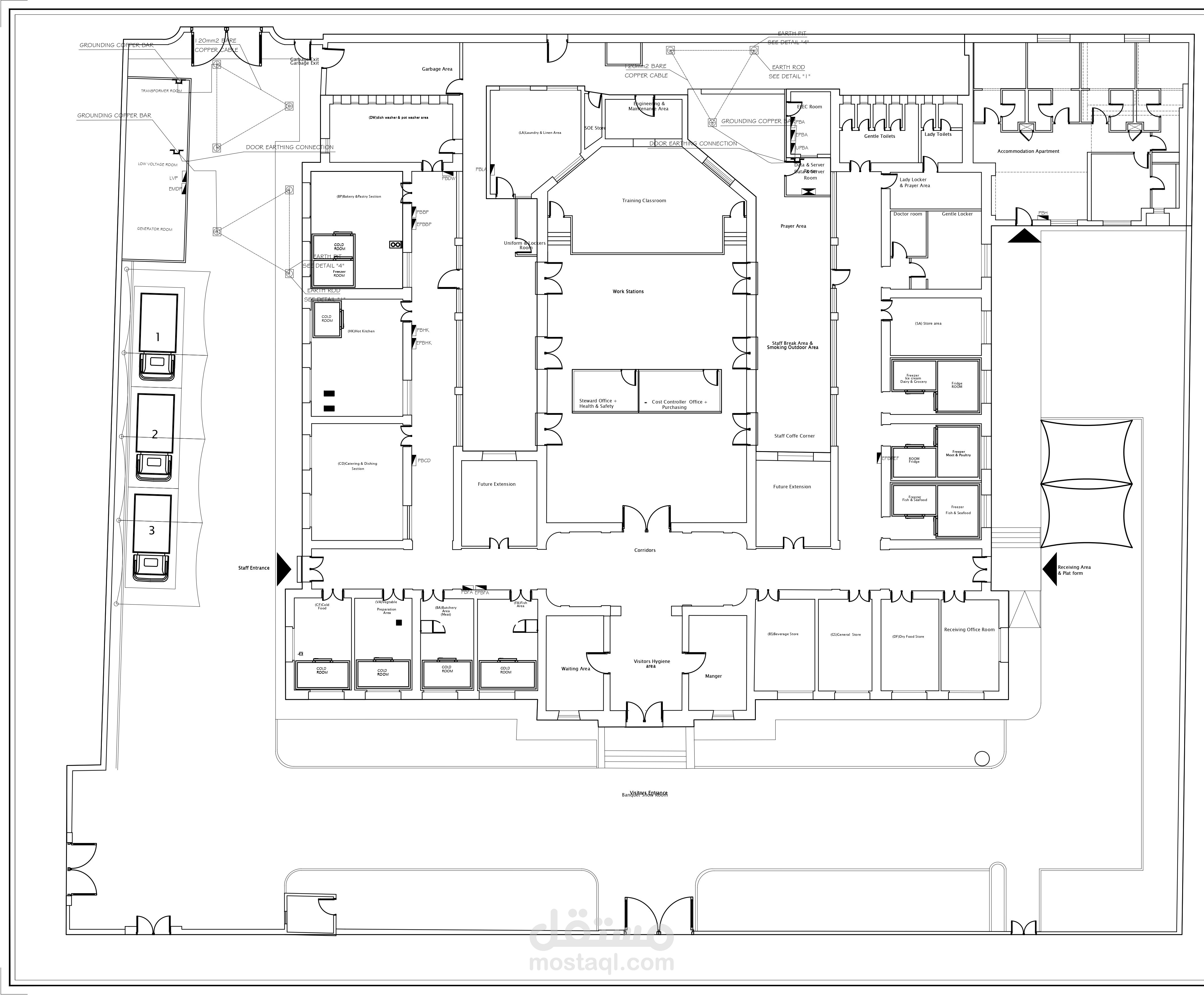 تم تنفيذ التصميم الكهربائي الكامل لمبنى مطبخ مركزي يخدم مجموعة مطاعم، يتضمن مناطق إعداد وطهي وتخزين وخدمات إدارية، مع الالتزام بأعلى معايير الأمان والسلامة الكهربائية داخل بيئة تشغيلية عالية الكثافة.