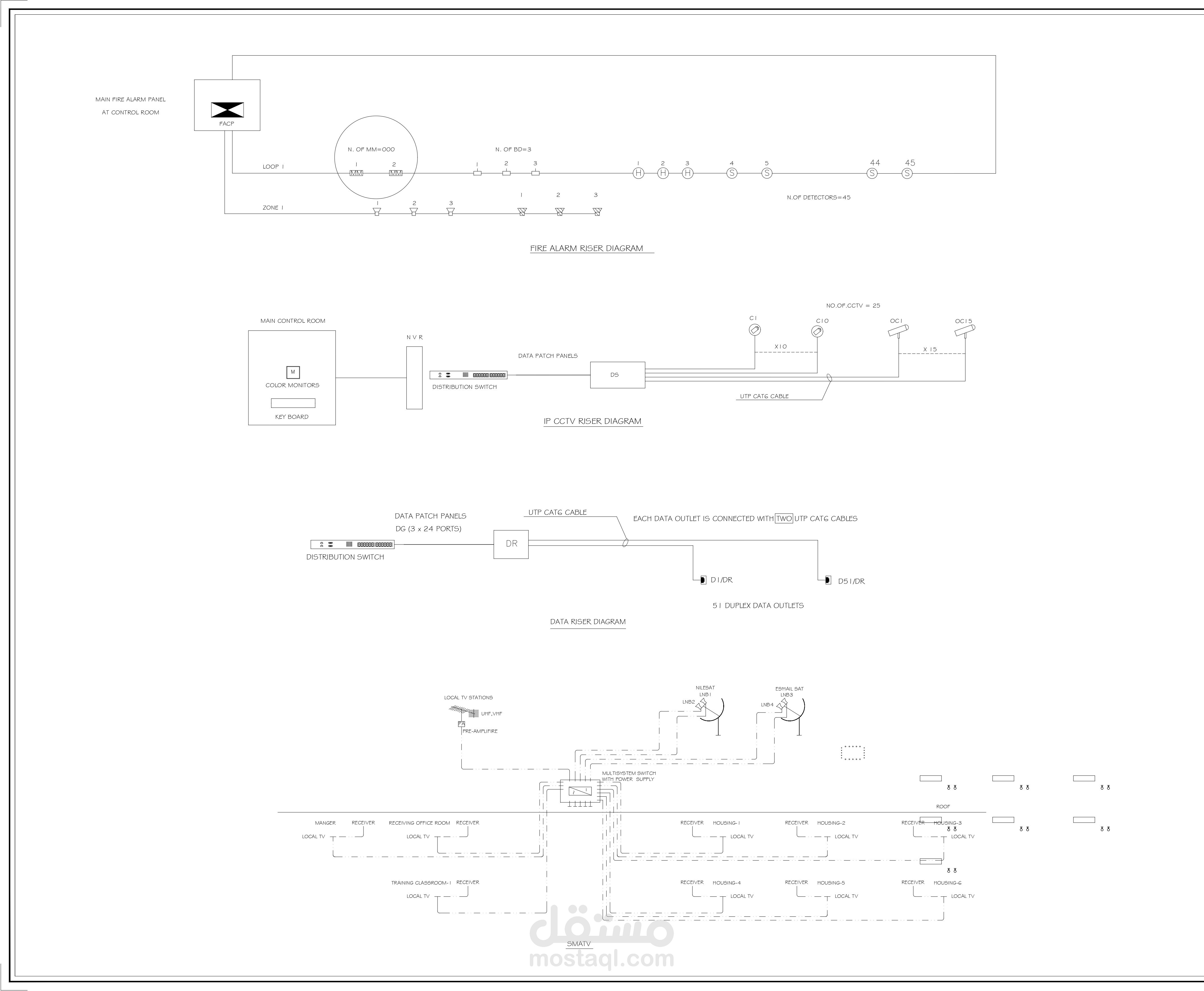 * تصميم منظومات التيار الخفيف (ELV Systems) وتشمل: