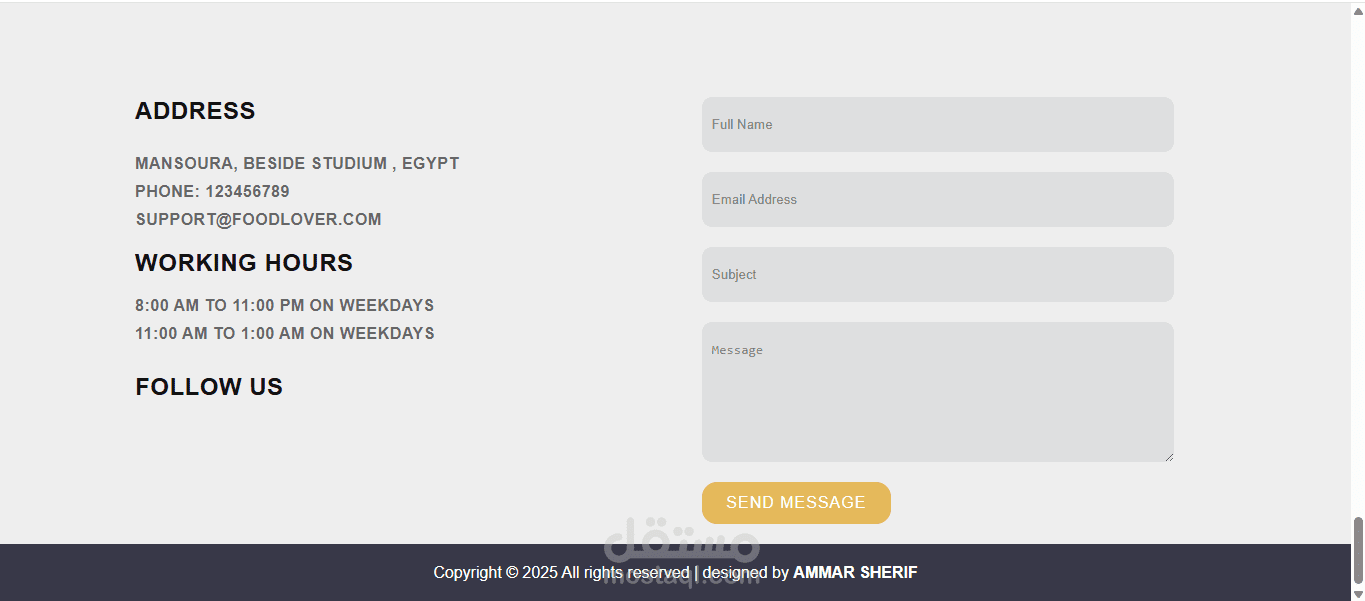 موقع إلكتروني تفاعلي لمطعم Food Lover Restaurant تم تصميمه وتطويره ليكون متجاوب بالكامل مع جميع الأجهزة (حاسوب، تابلت، وموبايل).