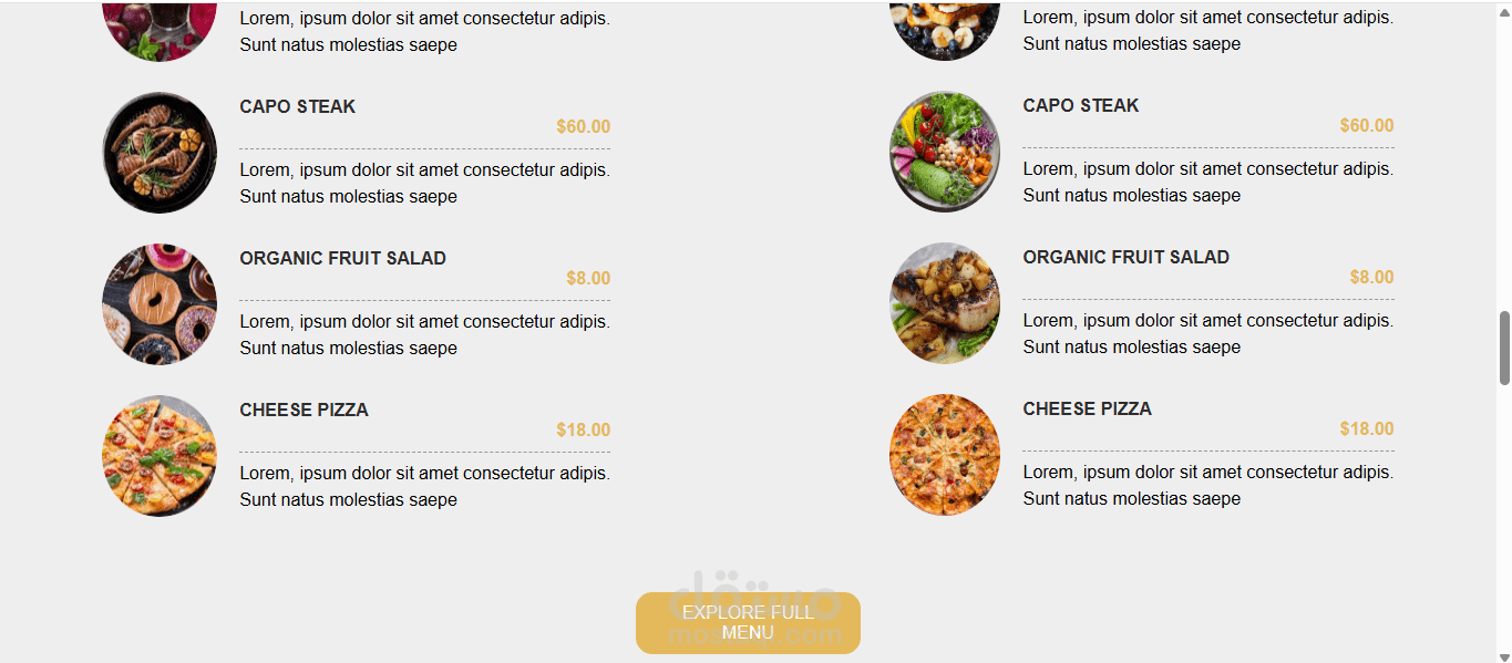 قائمة الطعام (Menu): عرض منظم للأطباق والمشروبات.