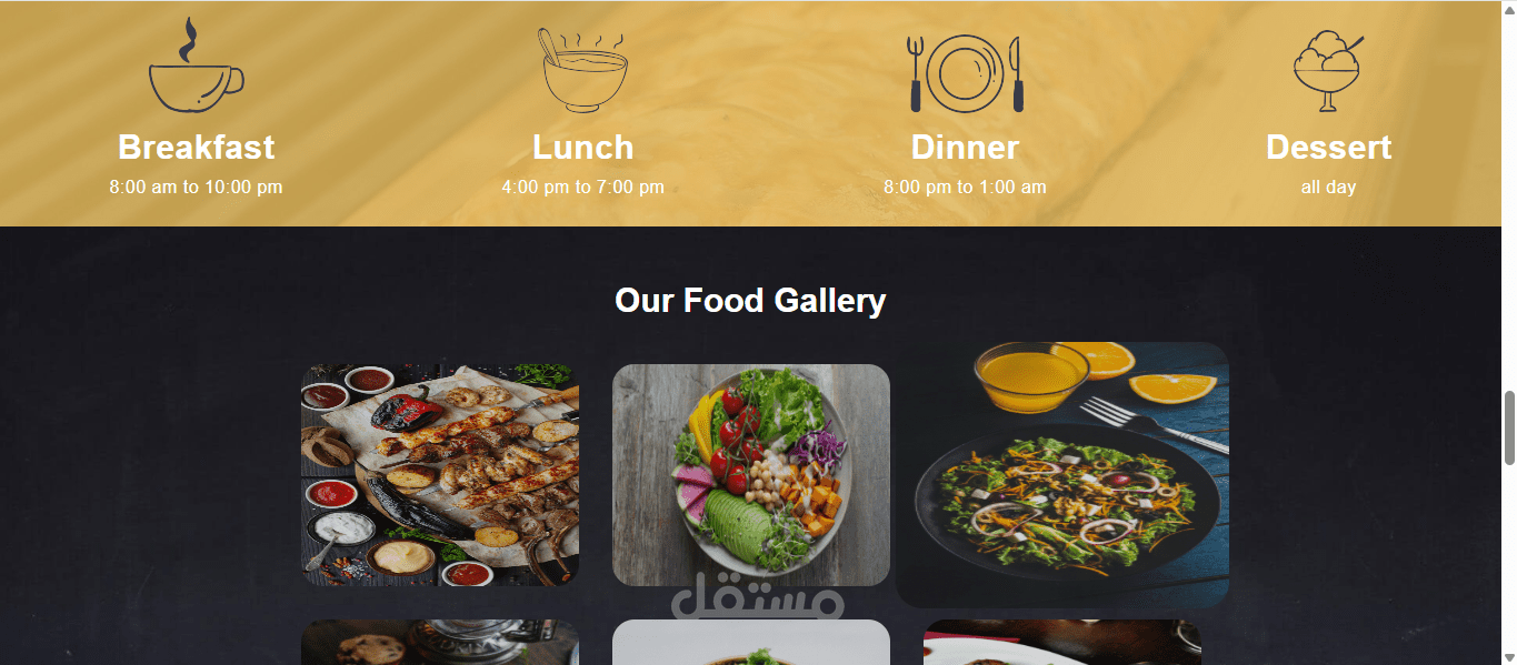 معرض الصور (Gallery): صور احترافية لأشهر الأكلات والمناسبات.