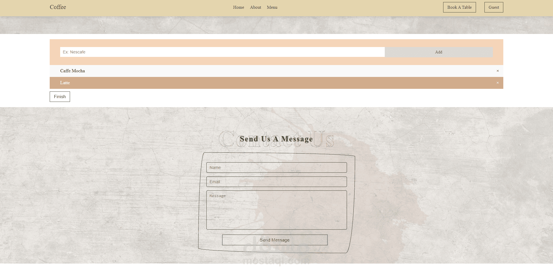 تم تصميم الواجهة بأسلوب حديث وبسيط مع ألوان دافئة تعكس جو المقاهي الهادئ والمريح.